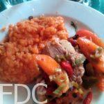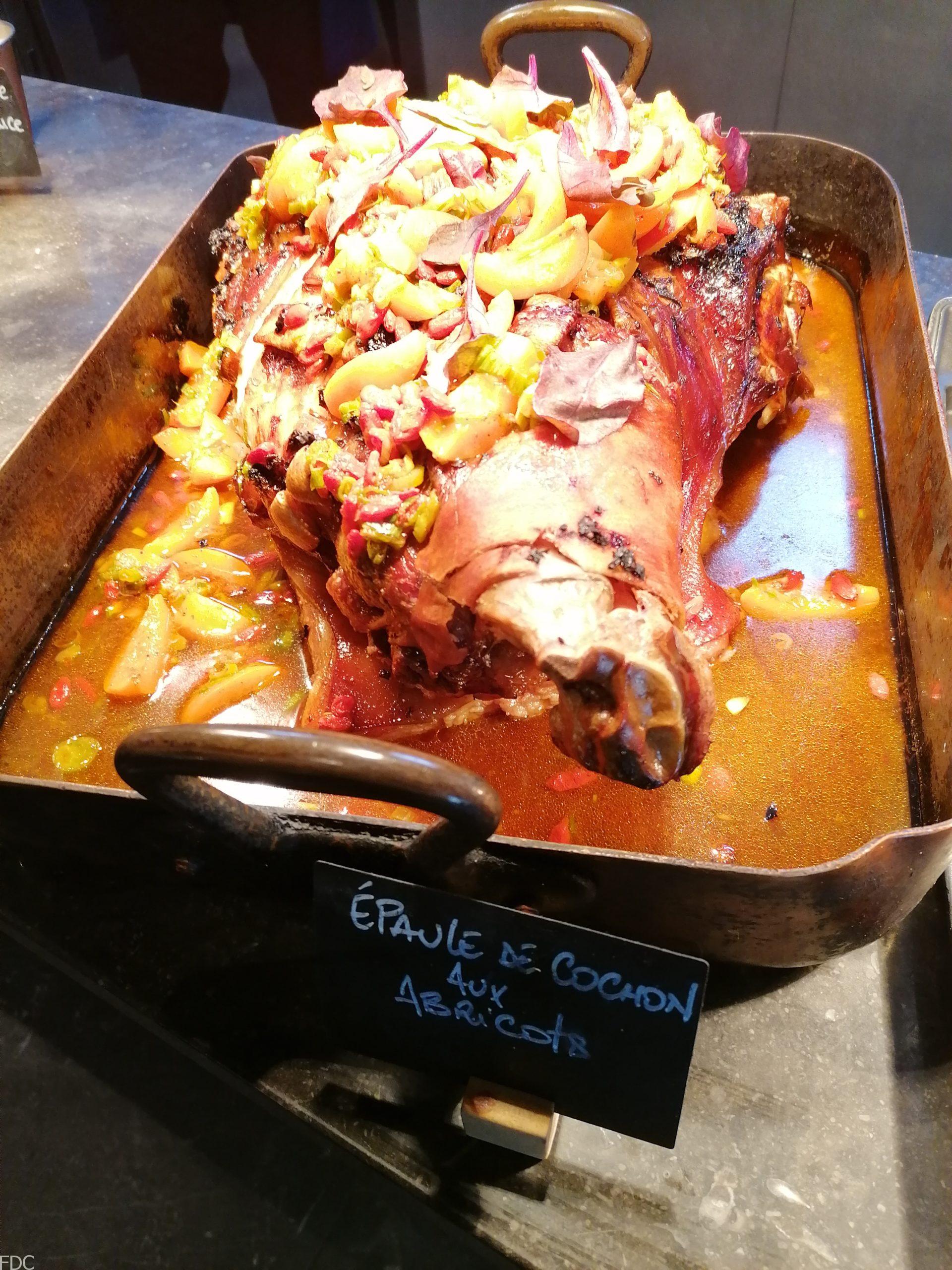 Sur le buffet j’ai testé les charcuteries, le rouleau de courgette. En plat, des ribs de bœufs en cuisson lente de 9h, fondant et bien relevé. L’épaule de cochon aux abricots avec un risotto de Piquillos tout simplement remarquable.