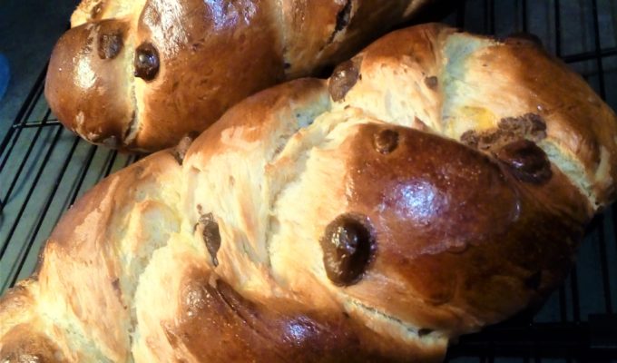 Ensuite vous avez deux solutions soit l’enfournez immédiatement à 170 ° environ 40 minutes, soit mettre au froid la nuit et cuire le lendemain matin. Dans ce cas mettre au froid avant que la babka double de volume car le temps qu’elle soit froide à cœur, elle peut continuer de pousser.