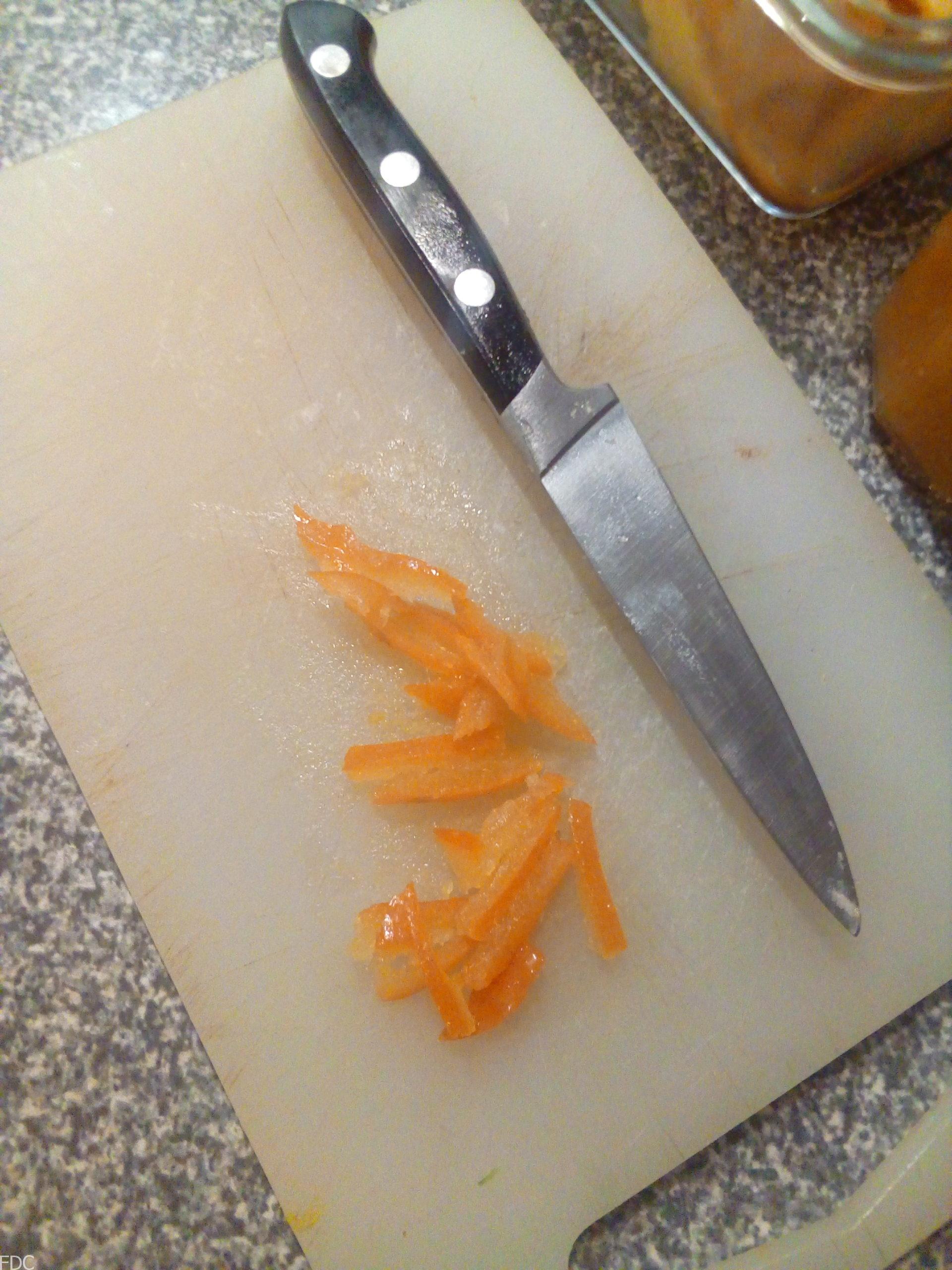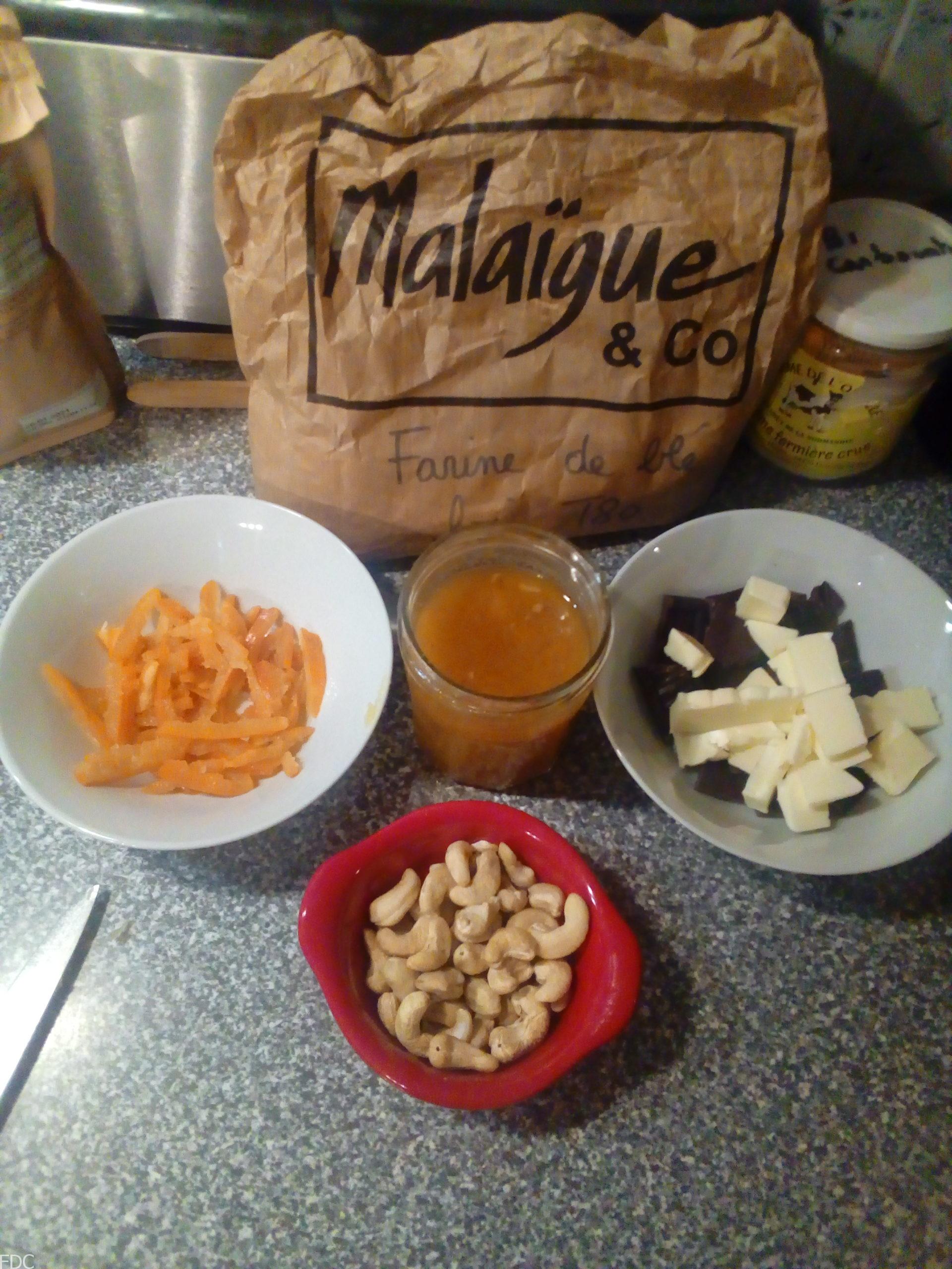 J’ai aussi profité d’avoir fait avec ma maman de la marmelade d’oranges amères (voir recette) et des restes d’écorces pour les faire confire. A cela j’ai ajouté du chocolat et des noix de cajou pour le croquant.