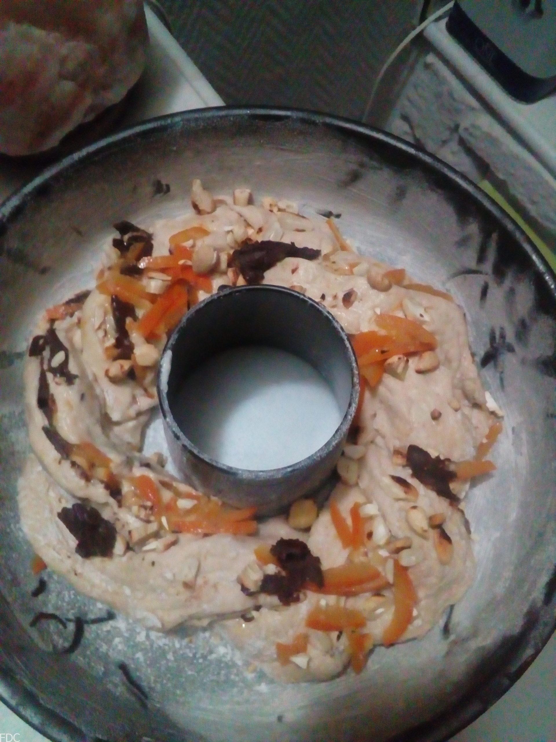 Ingrédients : pour un moule à cake de 30 cm ou moule à couronne