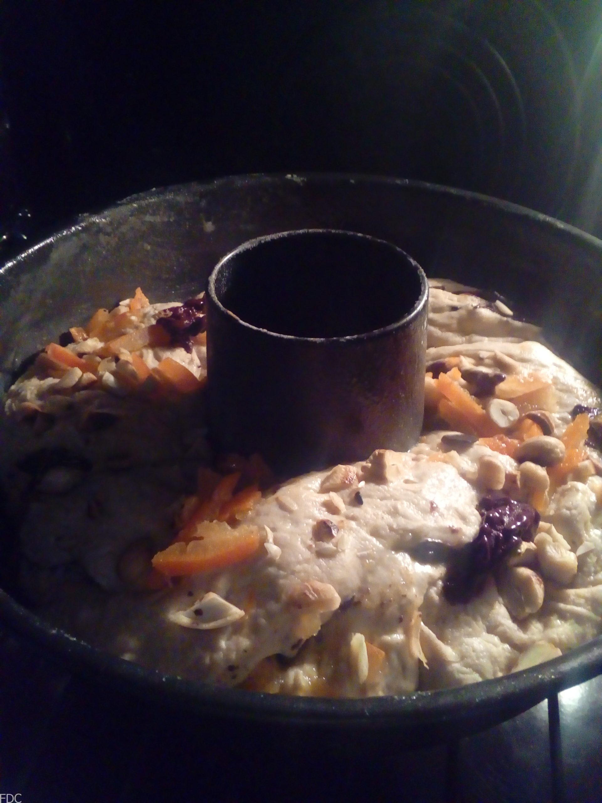 Ensuite vous avez deux solutions soit l’enfournez immédiatement à 170 ° environ 40 minutes, soit mettre au froid la nuit et cuire le lendemain matin. Dans ce cas mettre au froid avant que la babka double de volume car le temps qu’elle soit froide à cœur, elle peut continuer de pousser.