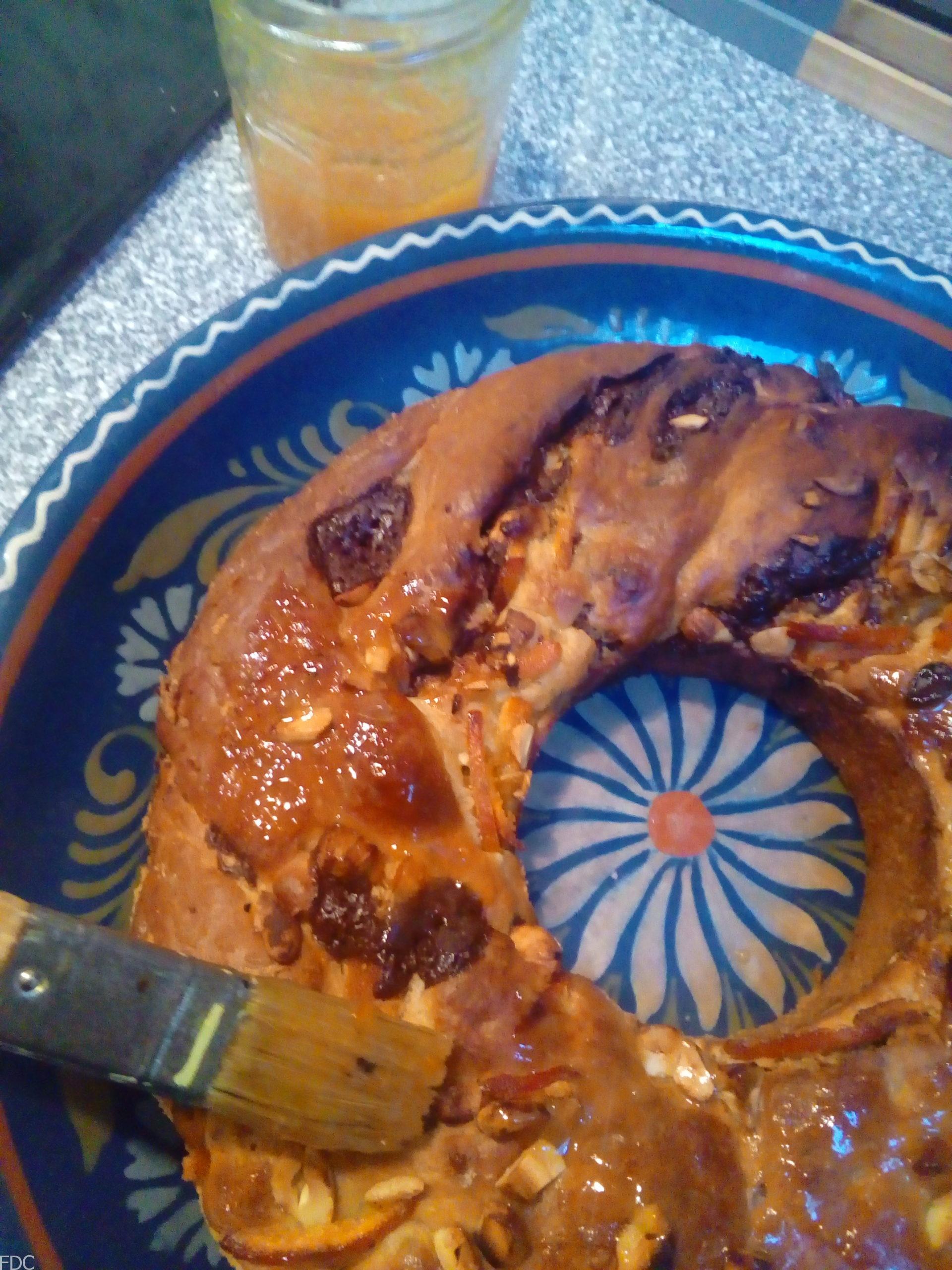 Encore chaude avec un peu de marmelade badigeonnez la Babka.
