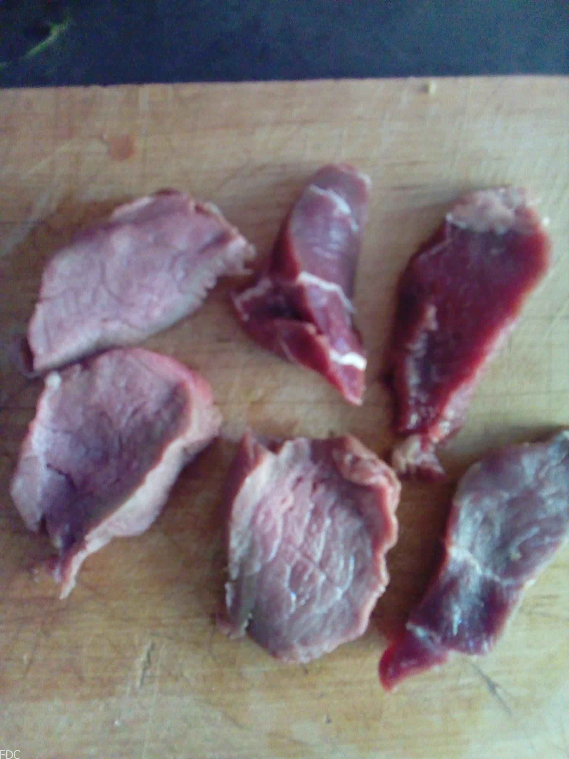 Commencez par découper la viande en lamelles régulières mais pas trop fines de sorte que la viande ne cuise pas en marinade trop rapidement ;