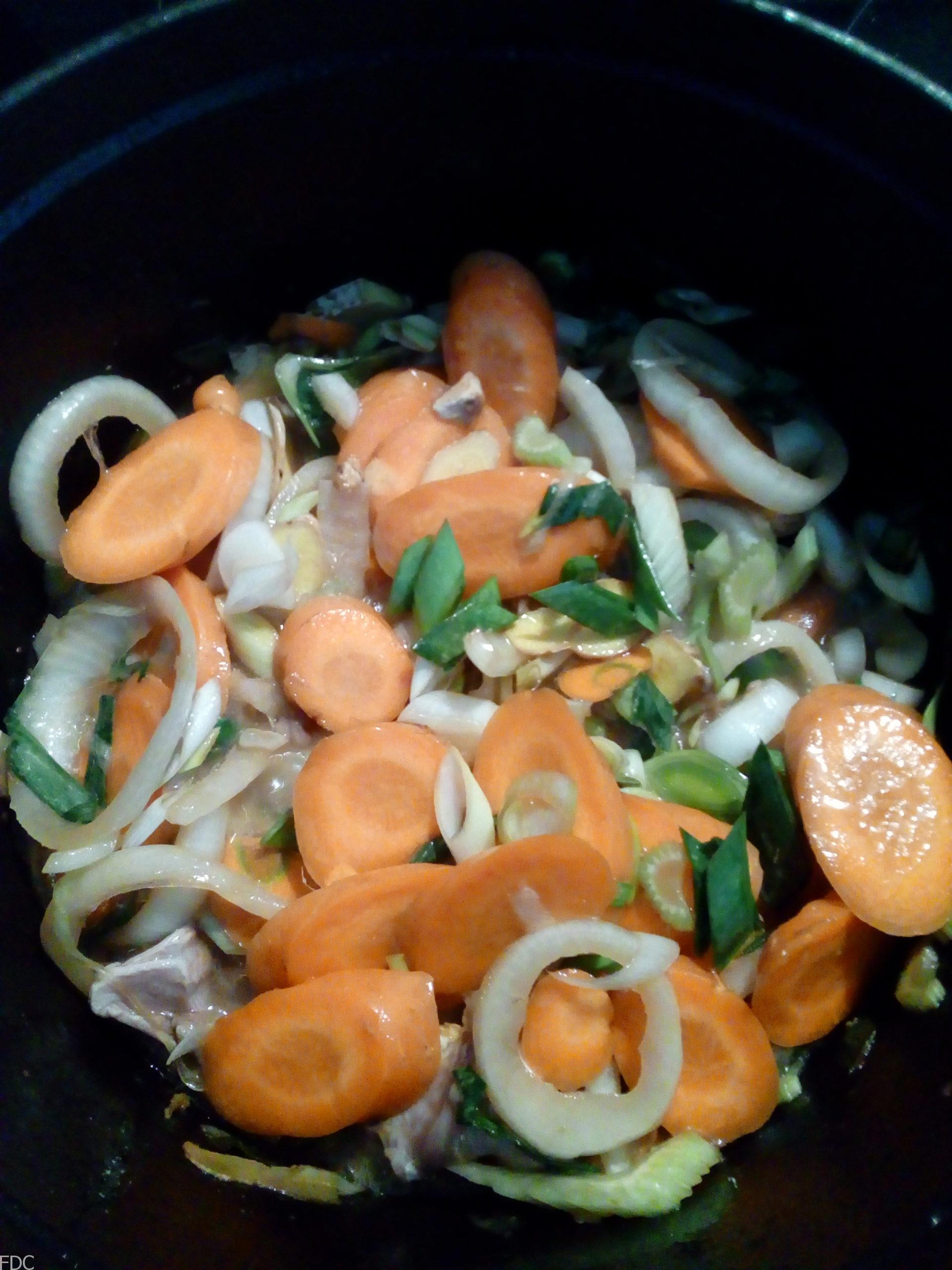 Ensuite égouttés les légumes de la marinade, faites-les suer sans coloration pendant 3 minutes environs.