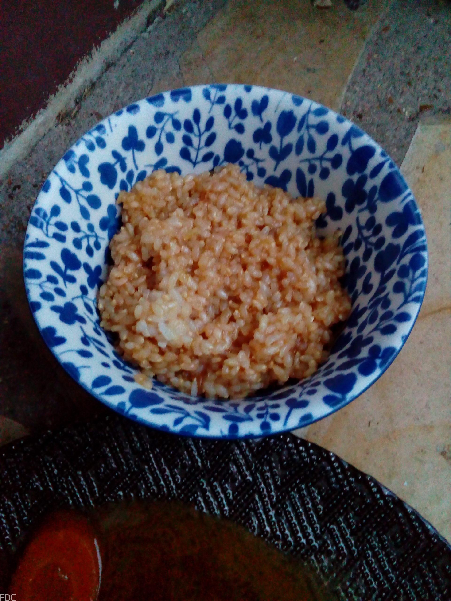 Un fois quasiment sec, mettez-le riz dans le cuiseur à riz ou casserole avec 1.10 de volume d’eau de source par rapport au volume de riz. Laissez reposer durant 30 minutes à 2 heures. Plus vous le laisserez plus le riz sera soyeux.