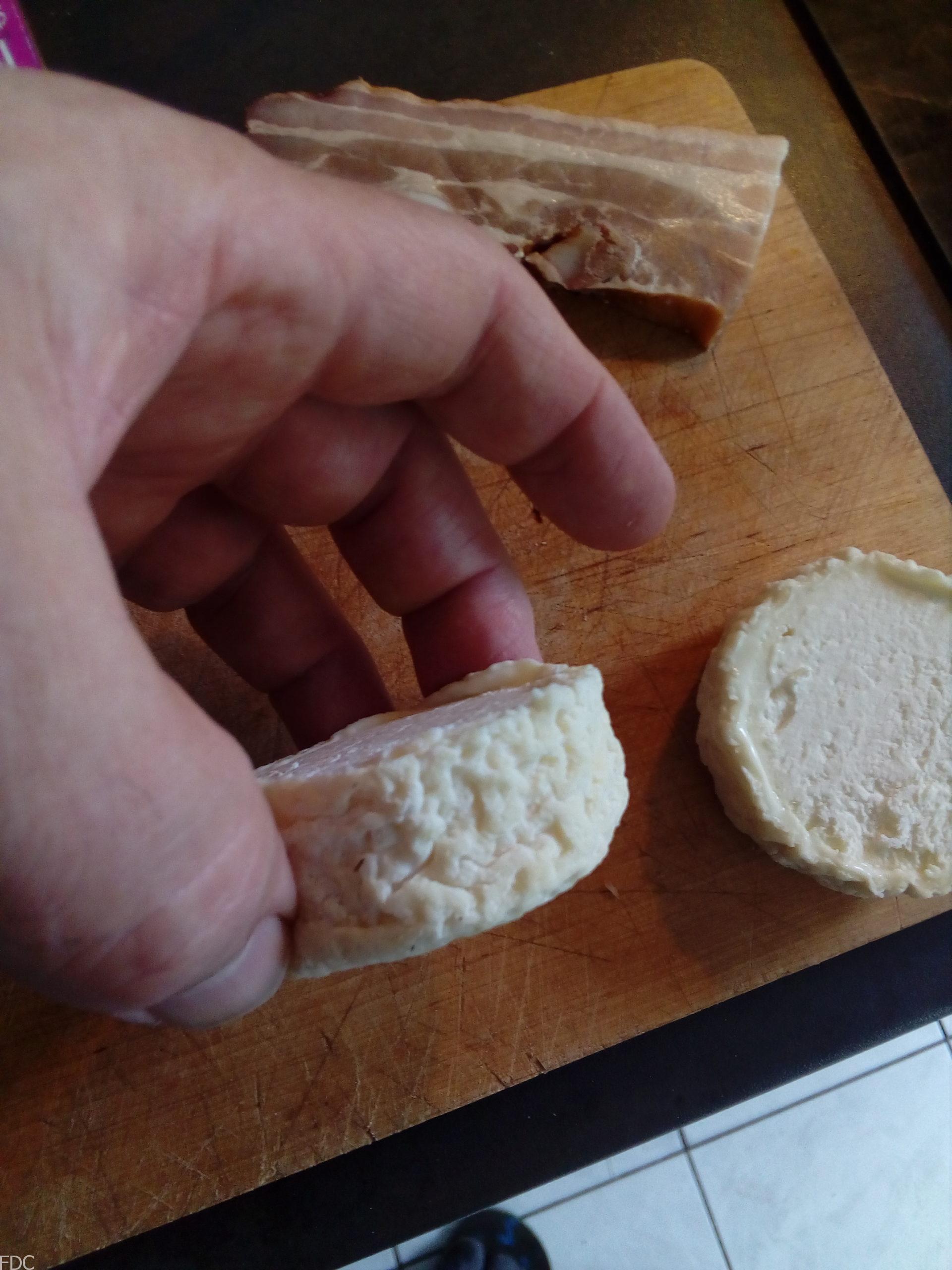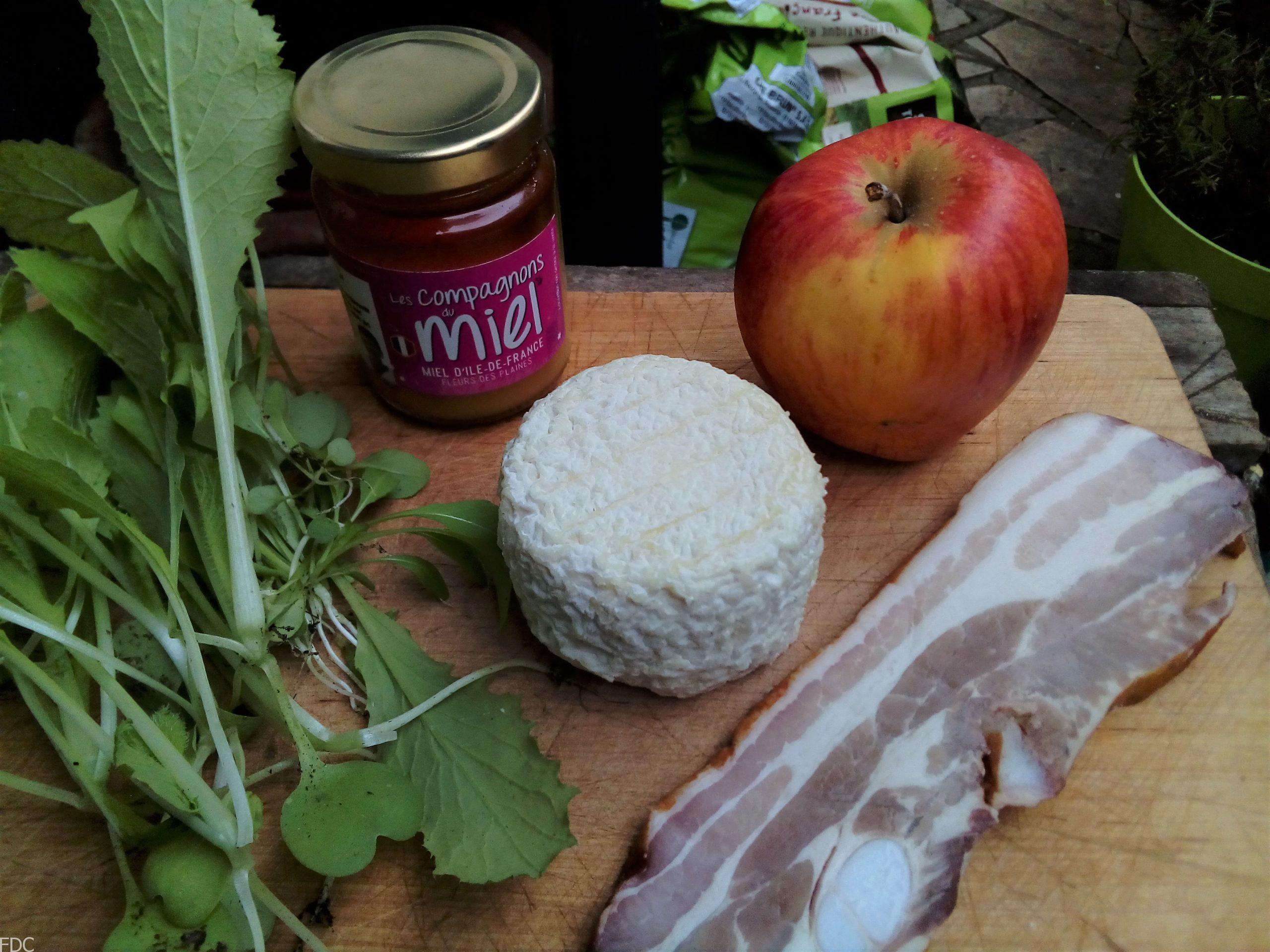 La variété de pomme idéale est la Reine des Reinettes. Sucrée et légèrement acidulée, elle aussi pour elle une excellente tenue à la cuisson. Le fromage de chèvre, couramment on utilisera un crottin fermier de Chavignol ou d’ailleurs mais pour ma part j’utiliserais des pélardons fermiers de la Ferme Couderc à Vallérargues (30). Je dis pélardons mais ils sont hors zone d’appellation. C’est juste pour rappeler le type de fromage.