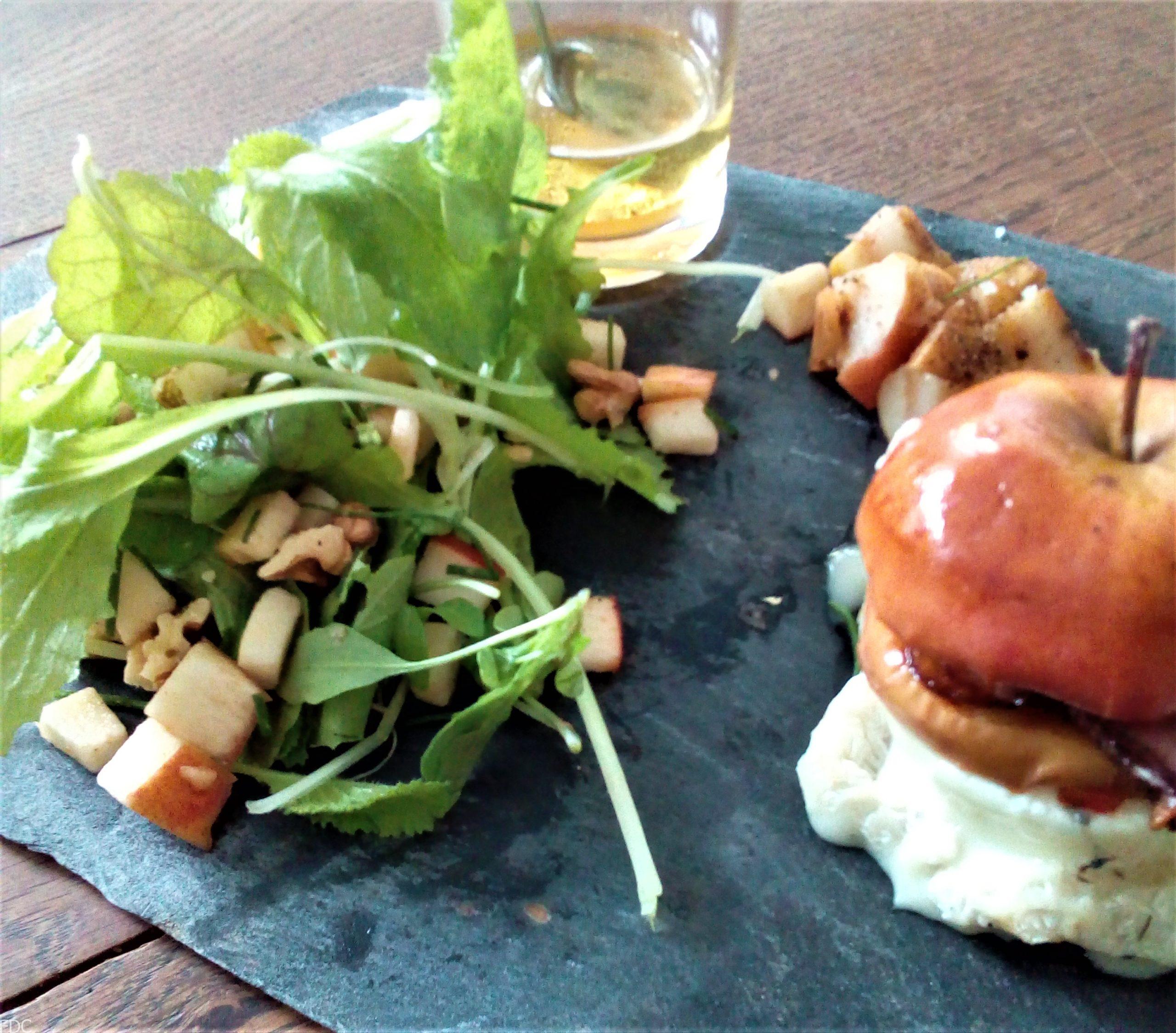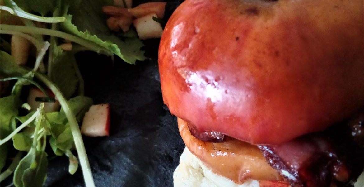 Ce burger de chèvre chaud est une variante et évolution d’une recette que j’avais fait, il y a plus de trente ans. A l’époque j’avais déjà un faible pour les pommes.