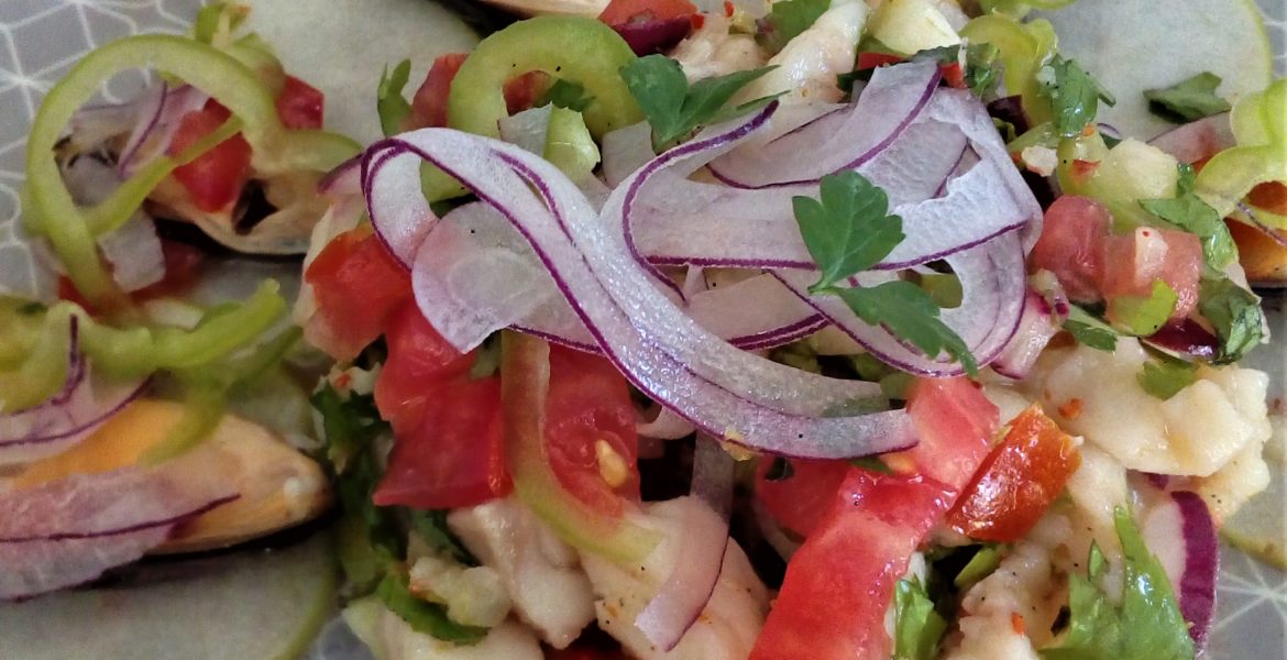 Avoir du poisson et des moules ultra frais directement du pêcheur, donne envie de faire des recettes aussi fraîches comme ce ceviche de Bar et moules. J’insiste sur la qualité des ingrédients. C’est une recette festive dont on ne doit pas sourciller sur la provenance. On vous propose du Bar d’élevage à « 10 balles » qui n’a jamais vu la pleine mer. Il n’y a que le Bar Sauvage de ligne qui soit bon. La chair se tient mieux et résistera à la cuisson par le citron. Les moules aussi, privilégiez les origines ou les sauvages que mon pêcheur ne fait pas cette année car trop petites.