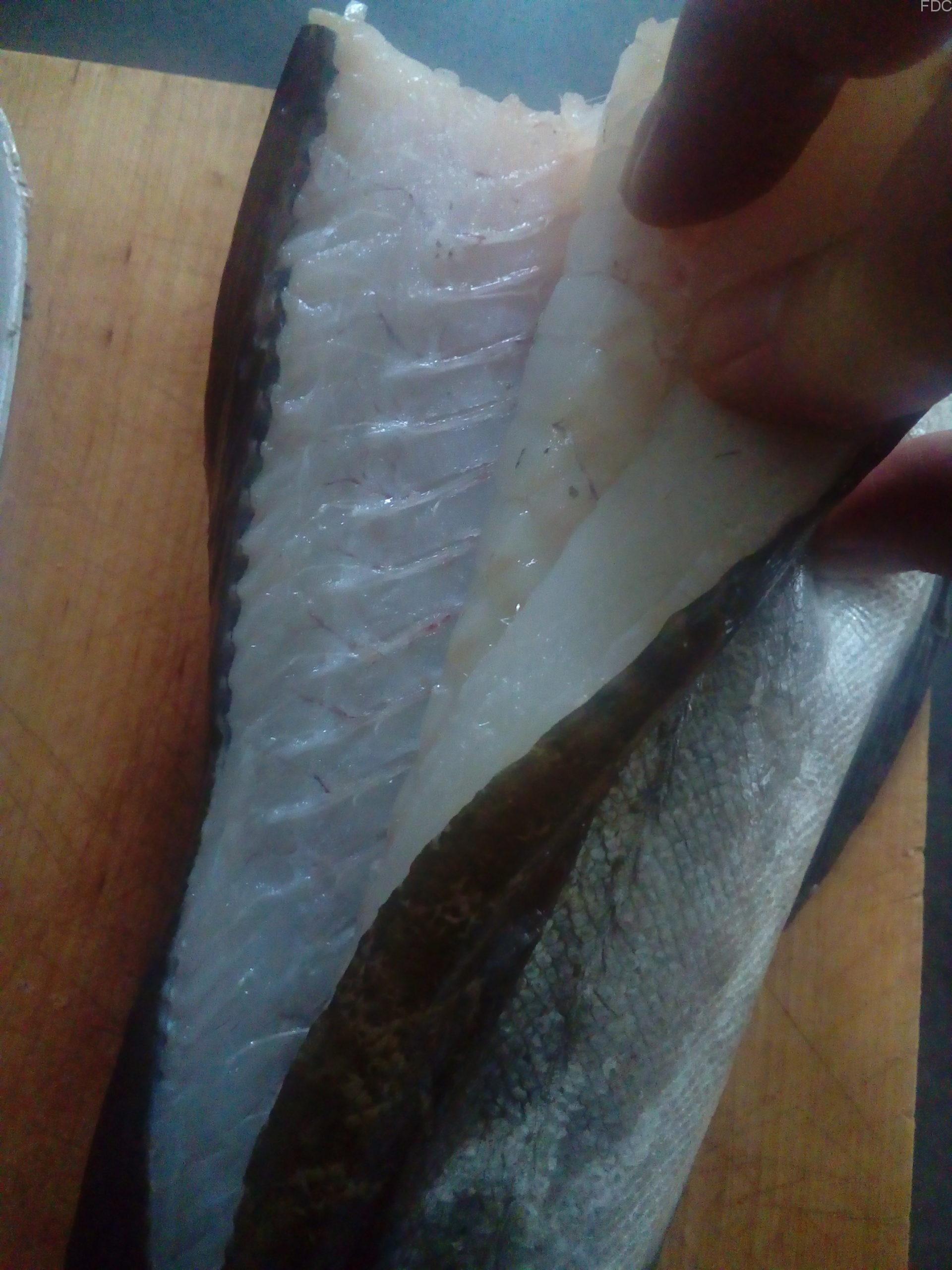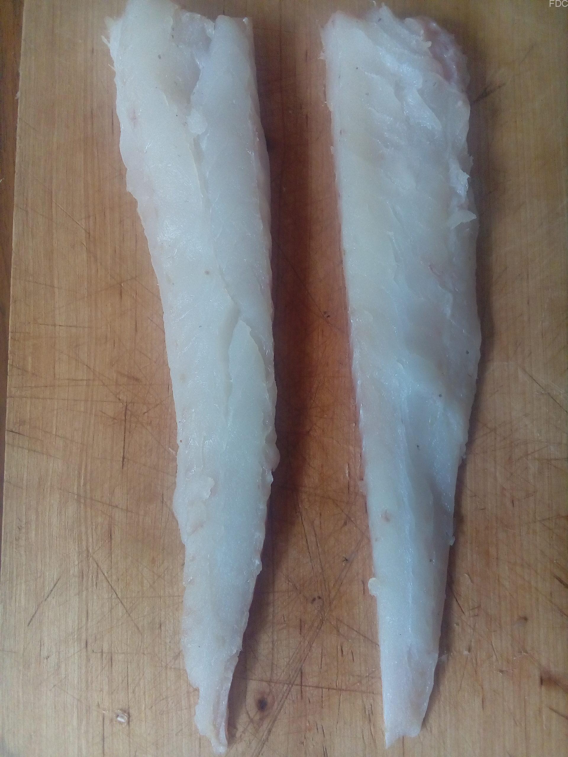 Les filets une fois séparé de la peau, faites des portions égales. Le morceau de la queue comporte une partie plus fine que vous replierez en deux afin de faire un pavé. Essayez de faire des portions les plus régulières pour une cuisson uniforme.
