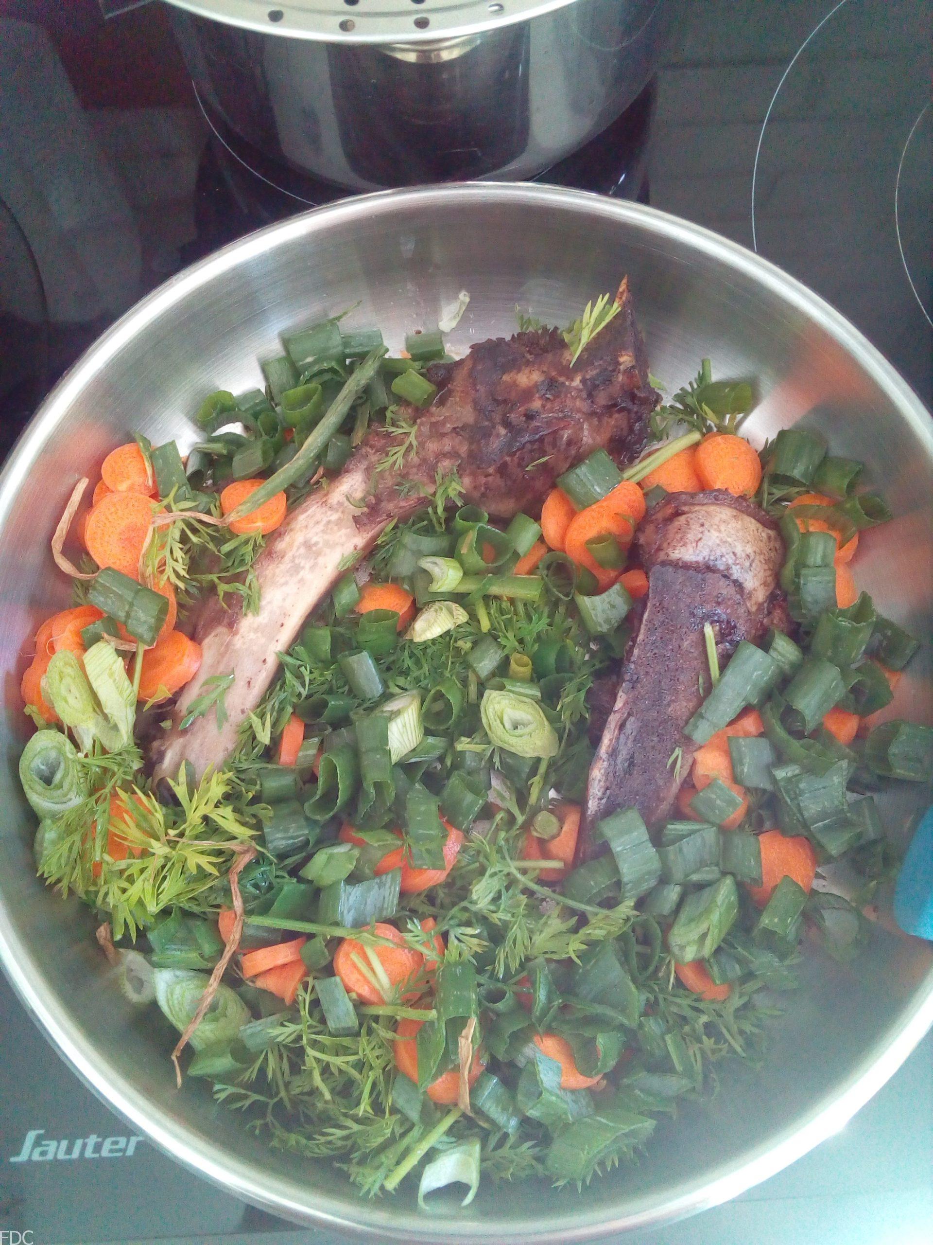 Pour la garniture de légume, utilisez ce que vous avez sous la main (céleri, poireau, etc.) mais la carotte est indispensable.