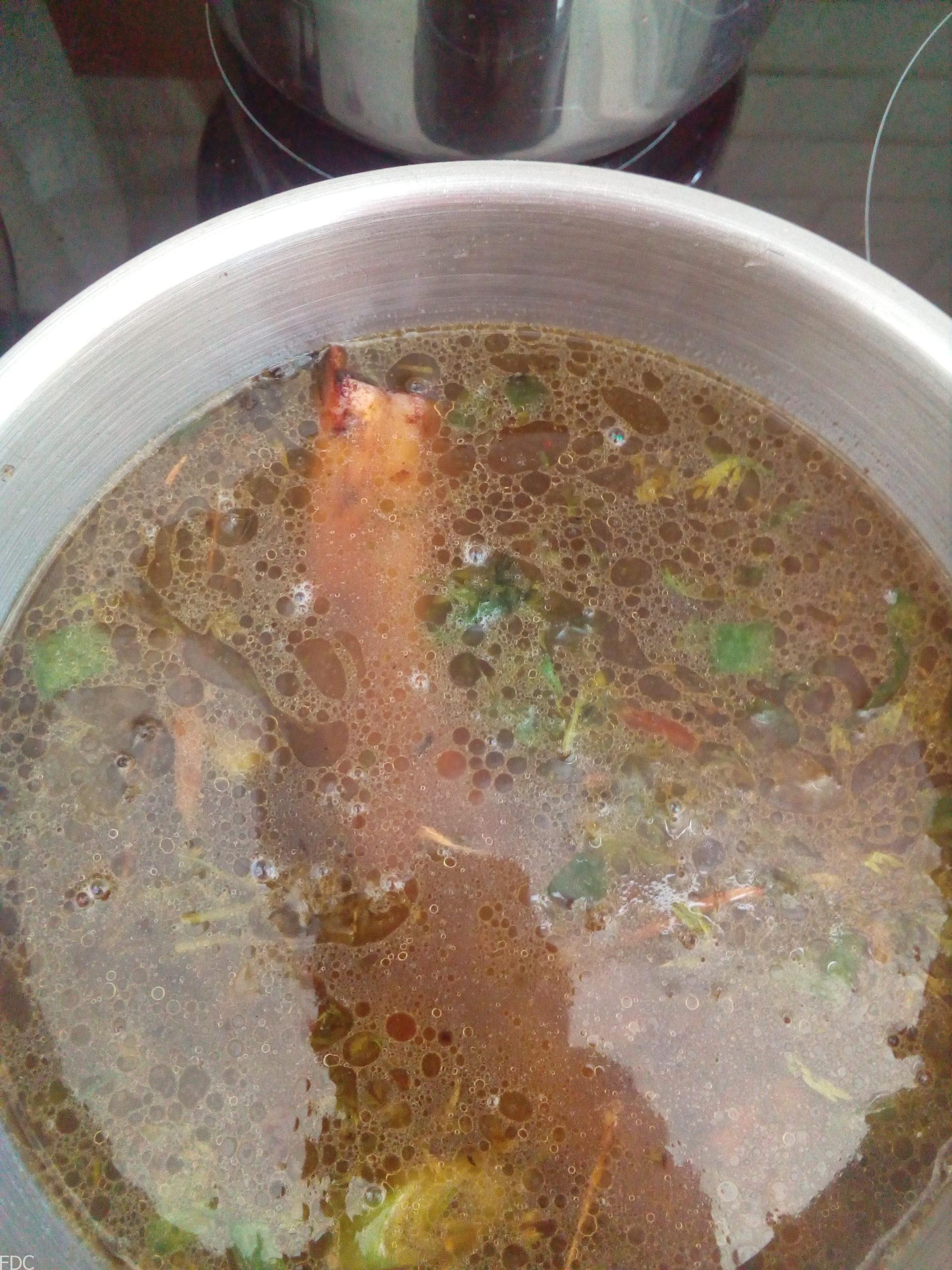 Bien mélanger et mouillez avec de l’eau largement environ 2 à 2.5 litres d’eau. Mettez vos grains de poivre et sel.