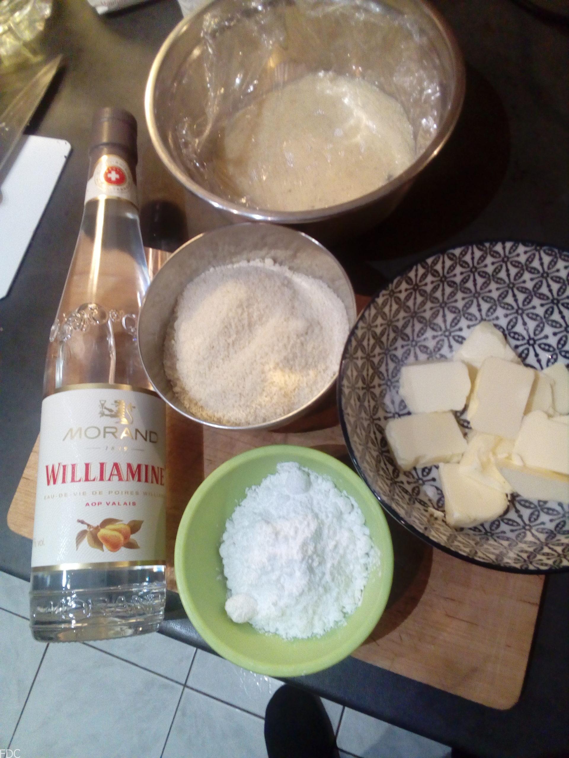 Alcool : 2 cl J’ai mis de l’eau de vie de poire car garniture aux poires, sinon c’est du rhum.