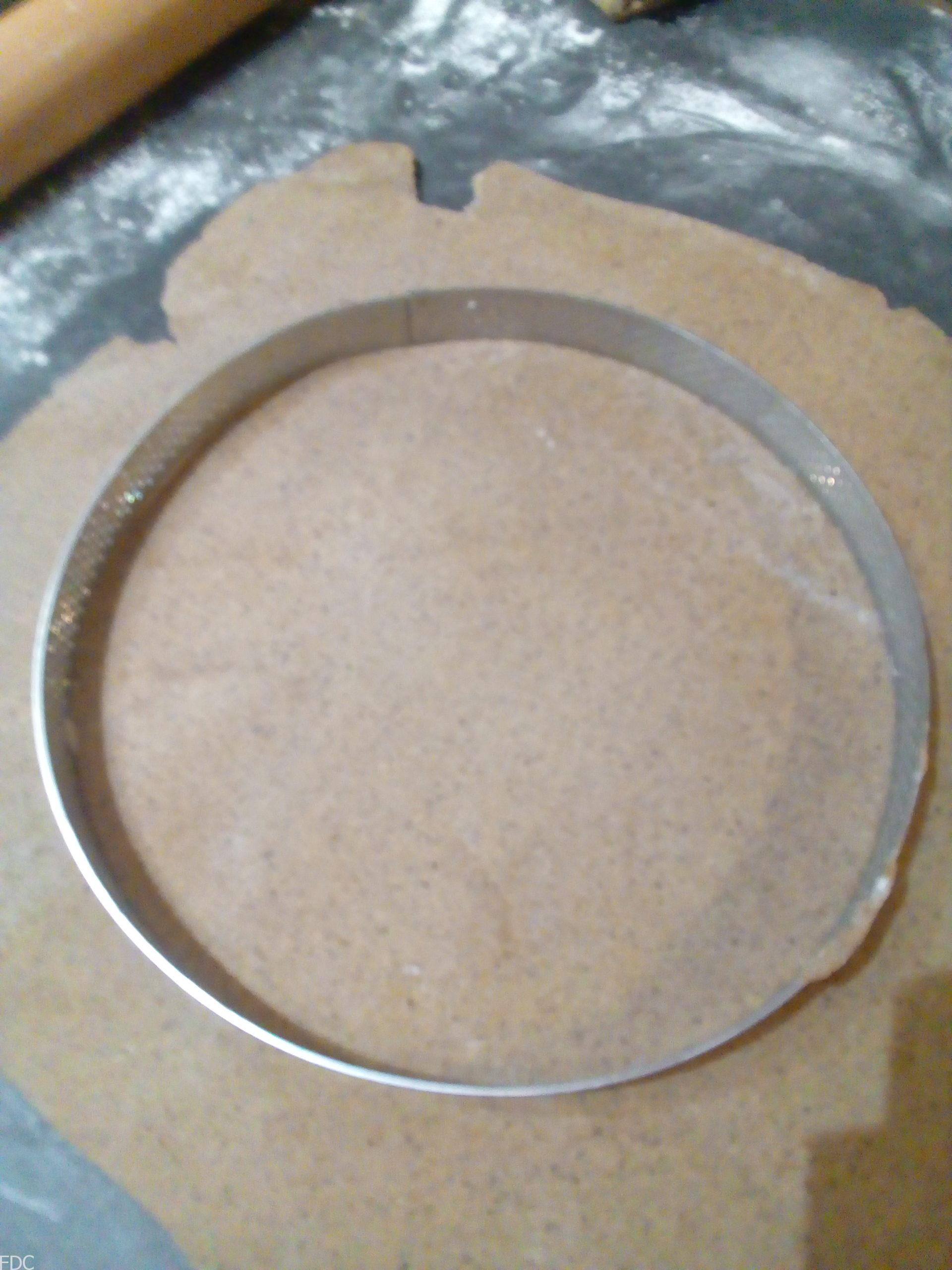 Etalez votre pâton sur 2 ou 3 mm d’épaisseur et faites deux cercles par galette.