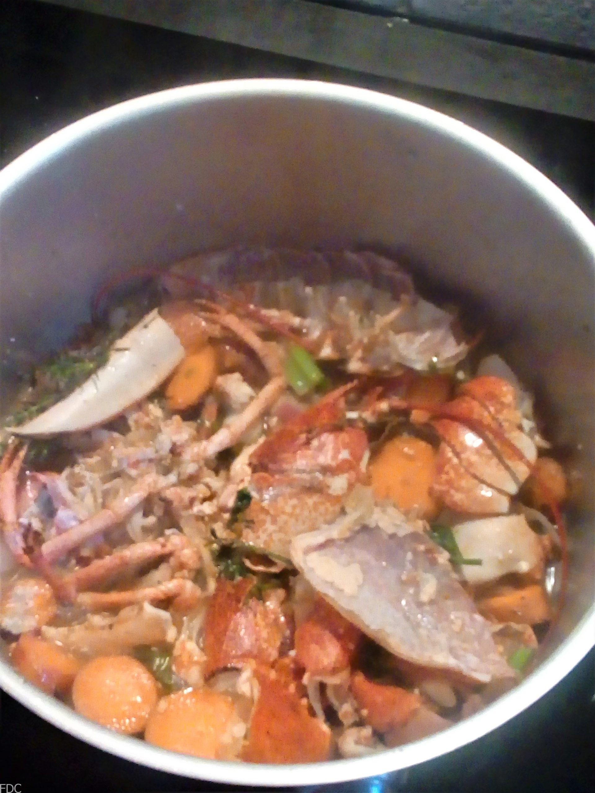 Je privilégie la cuisson dans l’eau bouillante pour deux raisons. La première je suis de près la cuisson selon le poids de la pièce et la deuxième raison est qu’une partie de l’eau de cuisson servira à mouiller mon fumet de homard.