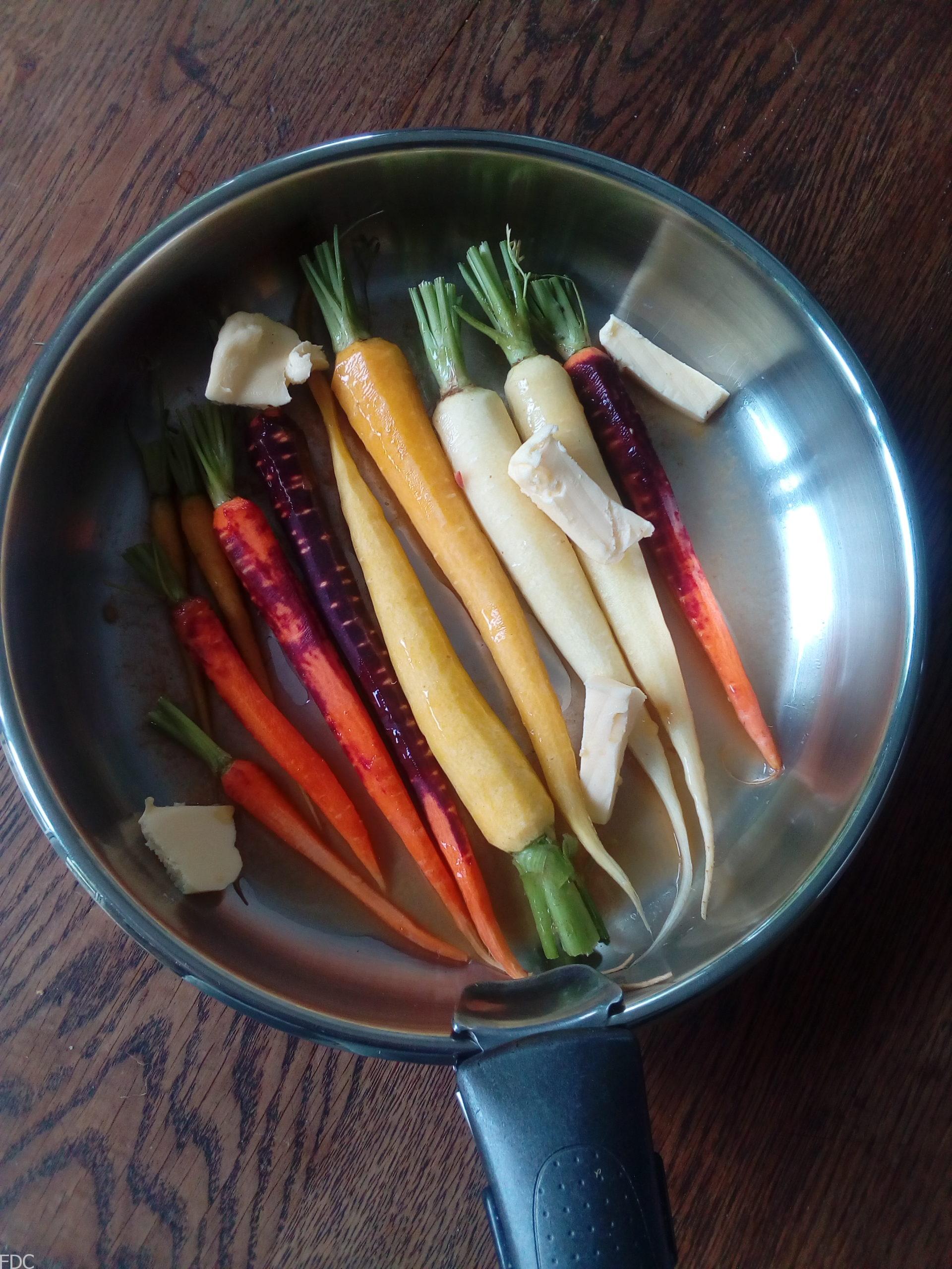 S’il reste du jus, faites-le réduire et remettez les carottes en les remuant pour que les carottes s’enrobent du jus sirupeux.