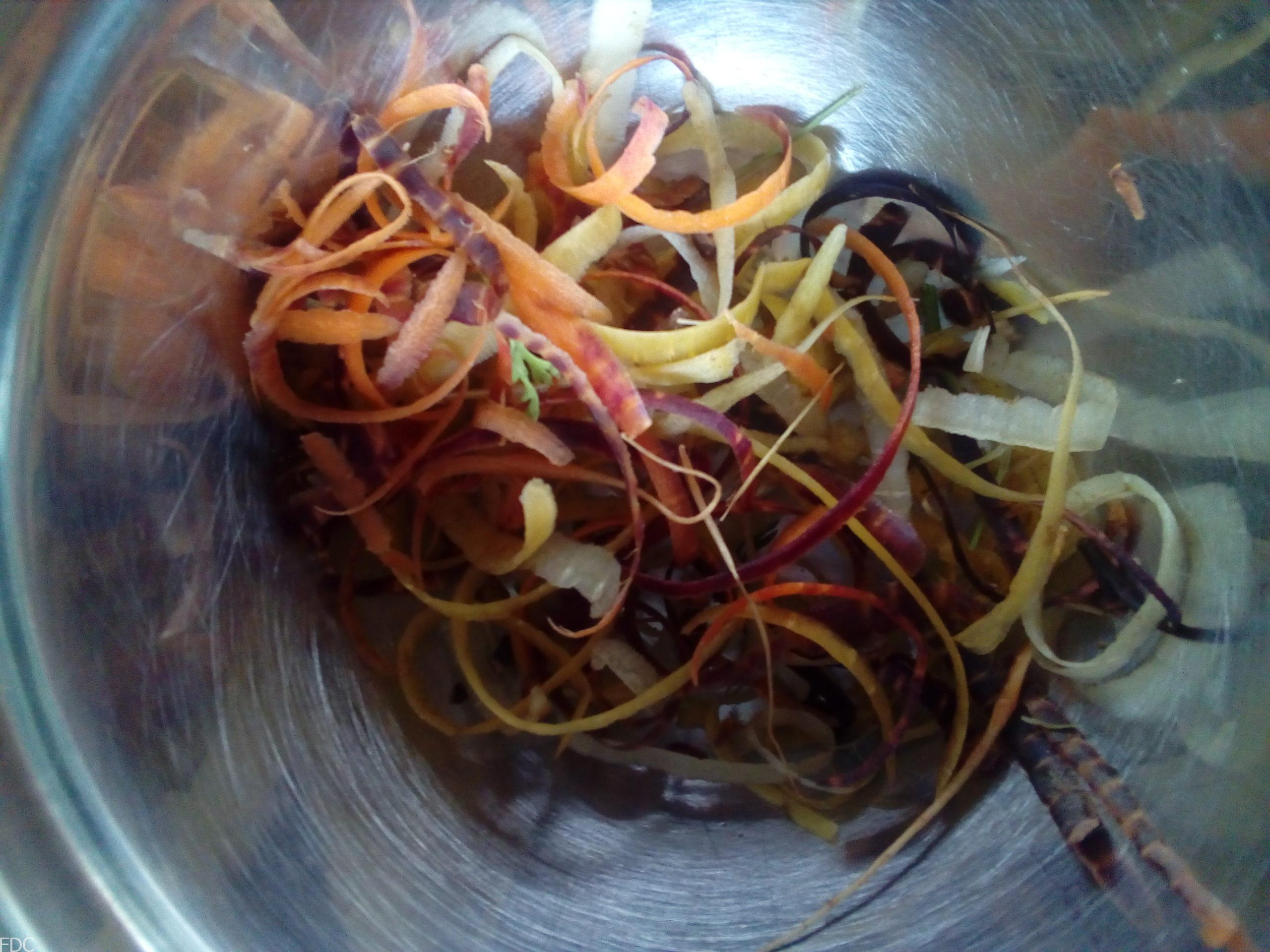 Mettez les épluchures dans un saladier et filmé. La cuisson se fera au dernier moment