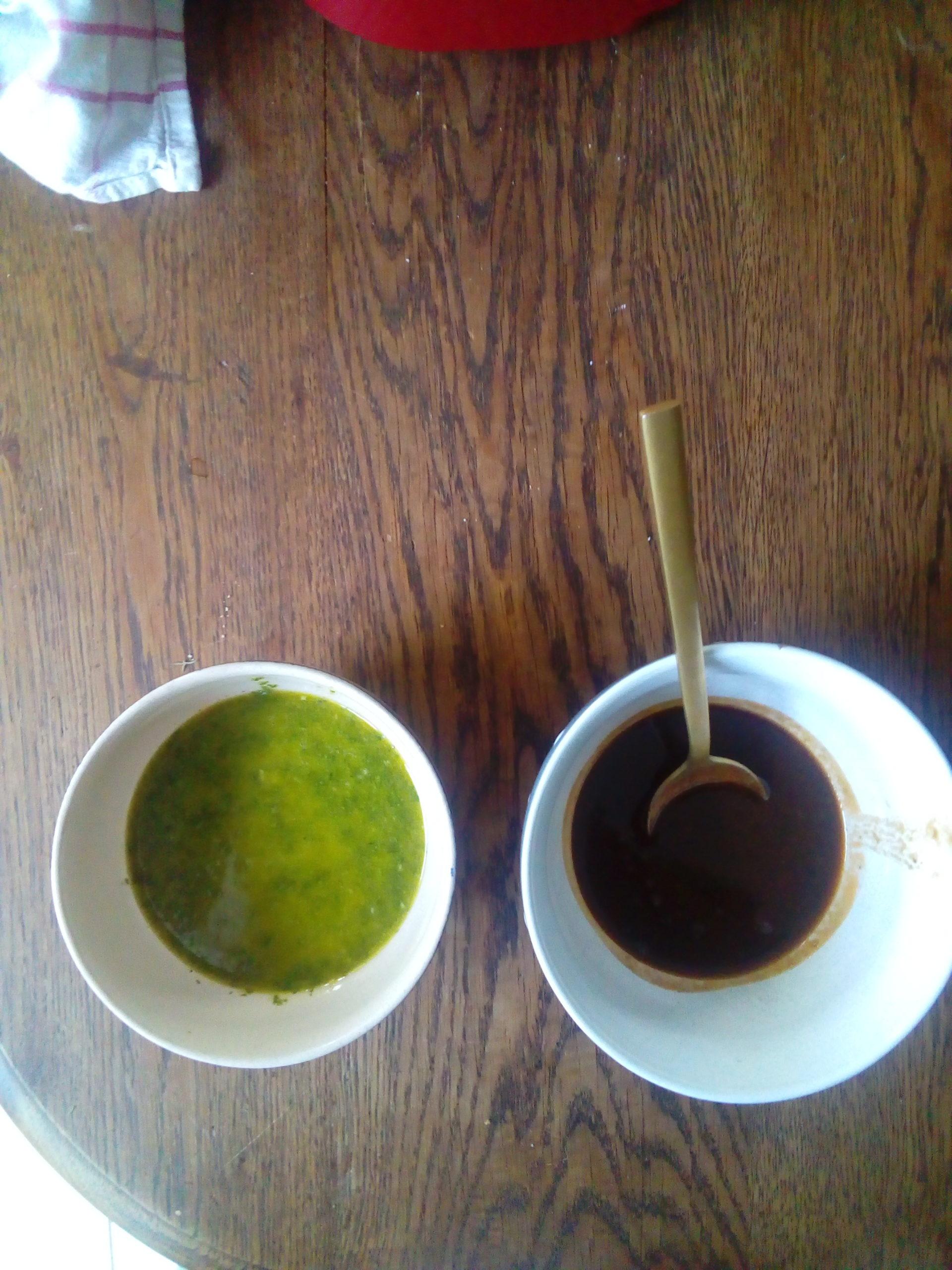 Ajoutez, un demi jus de citron, un demi zeste d’orange, 1 gousse d’ail, 8 cl d’huile d’olive, sel, poivre.