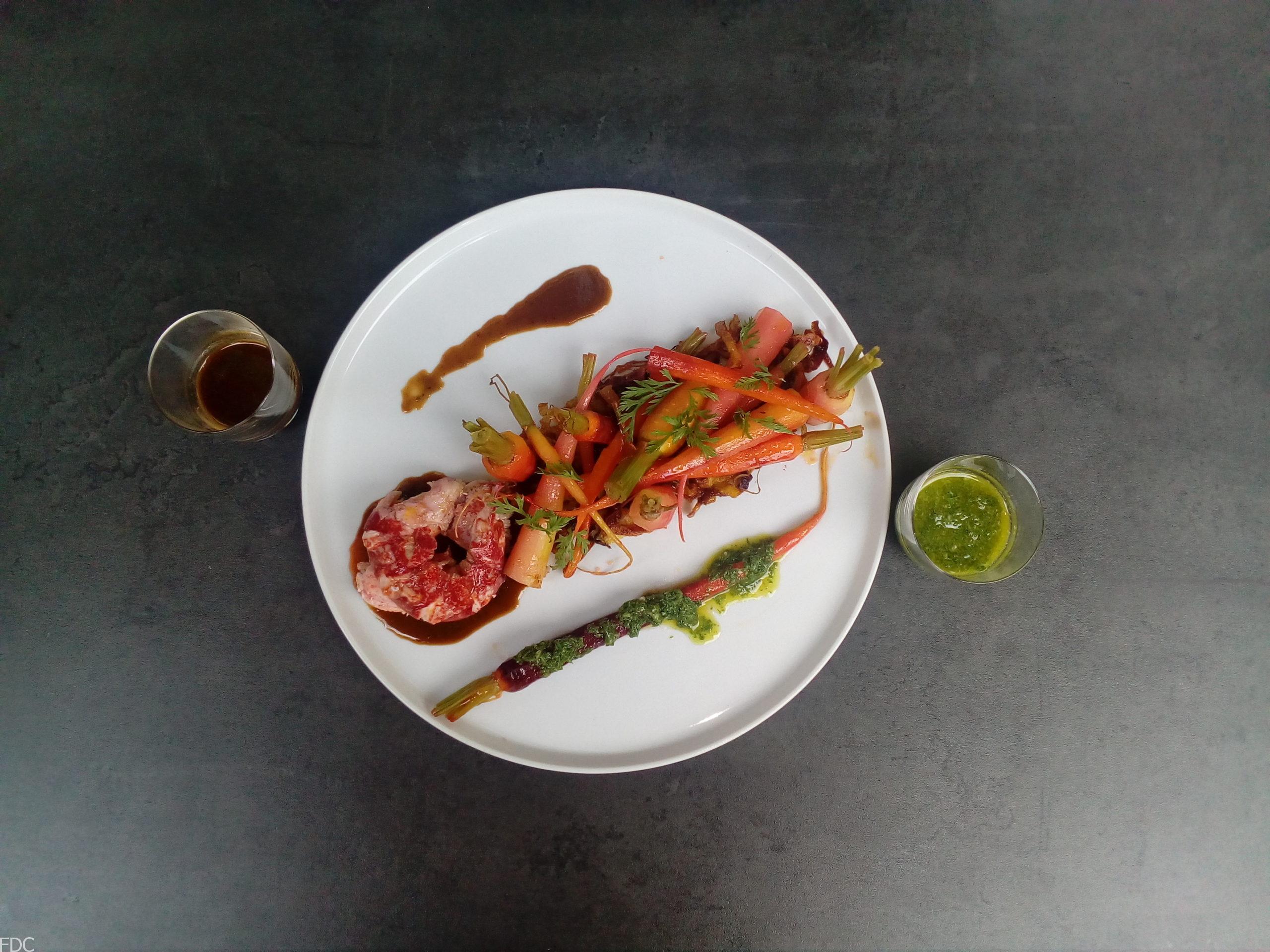 Et le reste est à votre convenance et créativité. Vous pouvez déguster ce délicieux homard et son jardin de carottes.