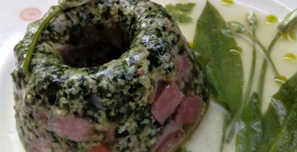 Le jambon persillé à l’ail des Ours est une déclinaison personnelle de la recette du persillé Dijonnais.