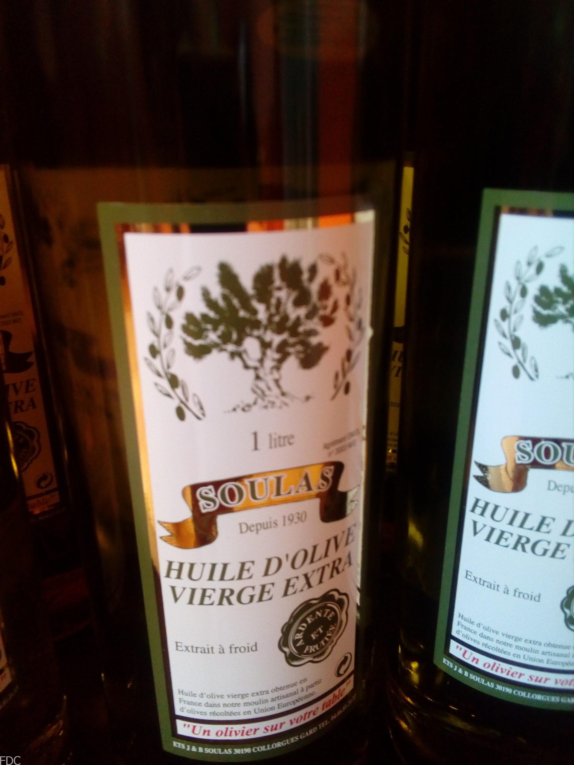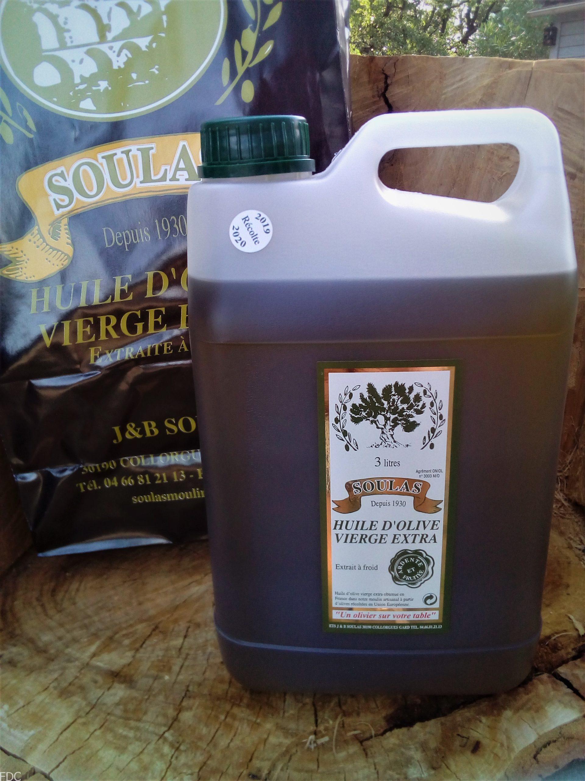 La bouteille d’1 litre d’extra vierge (assemblage de variétés) à 15.50 €, que j’utilise couramment en bidon de 3 l (39 €).