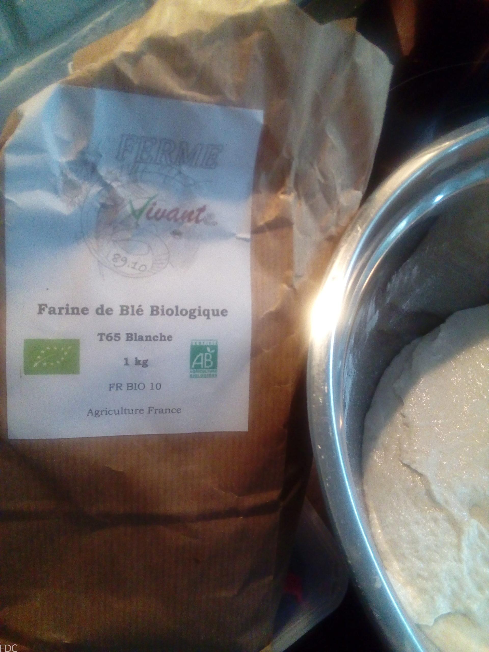 Farine Bio T65 : 500 g Ferme Vivante 89.10 farine paysanne contenant des résidus de son (plus proche d’une T80 au final)
