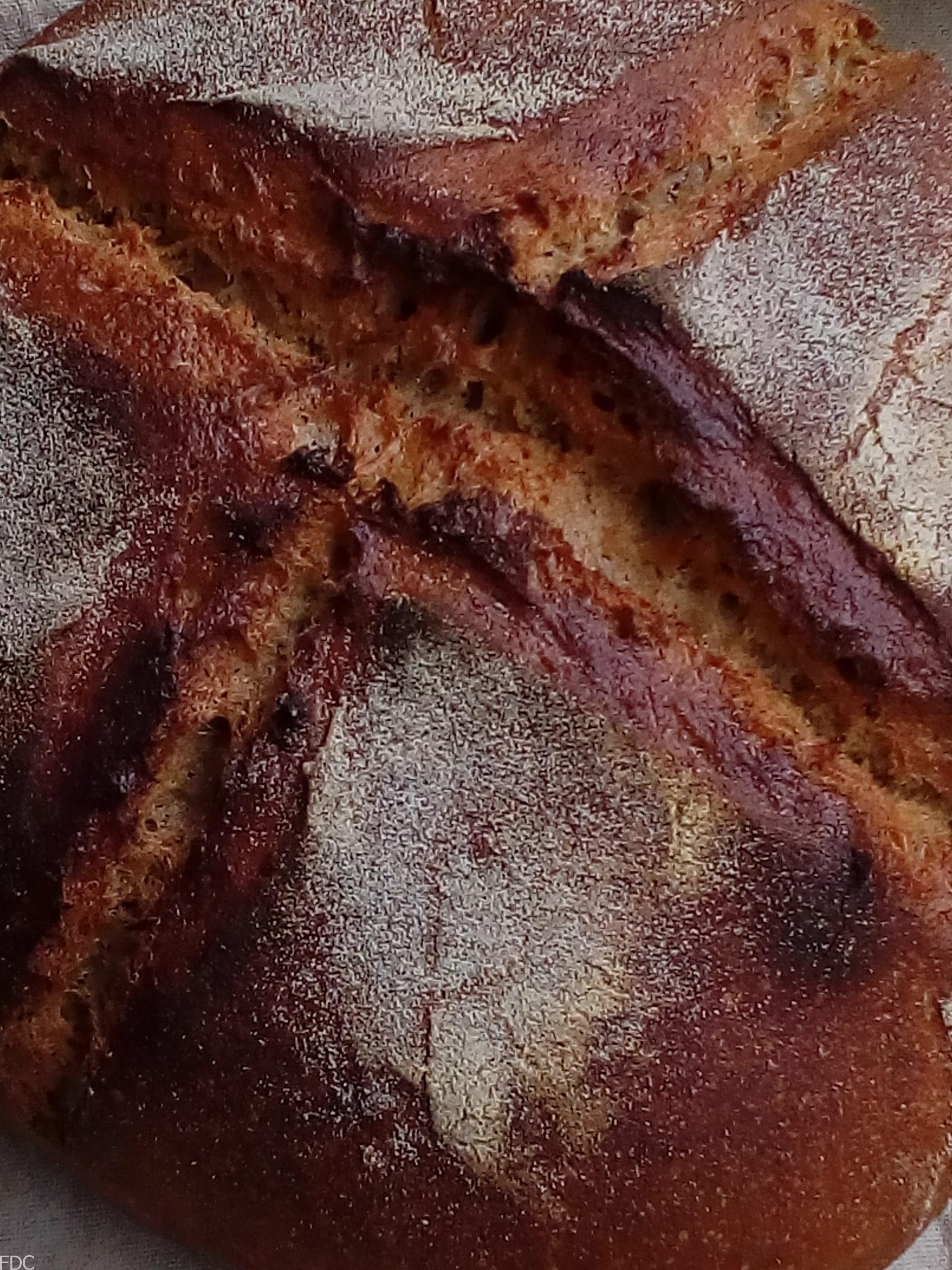 Ce Pain au levain naturel est un pain qui rappelle celui que faisait mon Grand Père, boulanger à l’ancienne, Résistant au fournil durant la seconde guerre mondiale.