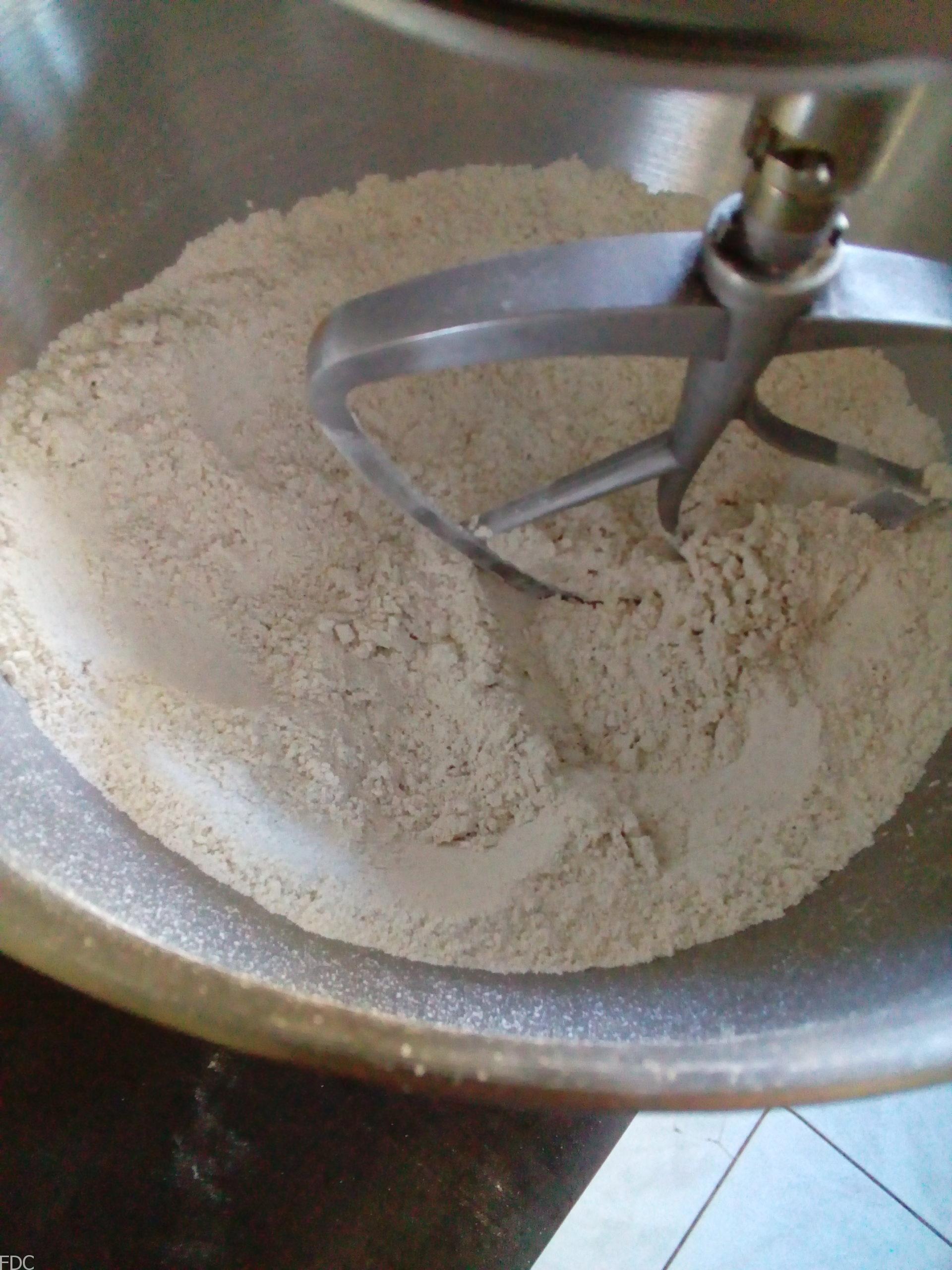 Pendant ce temps dans un saladier mettez-y la farine les épices et le bicarbonate. Mélangez.