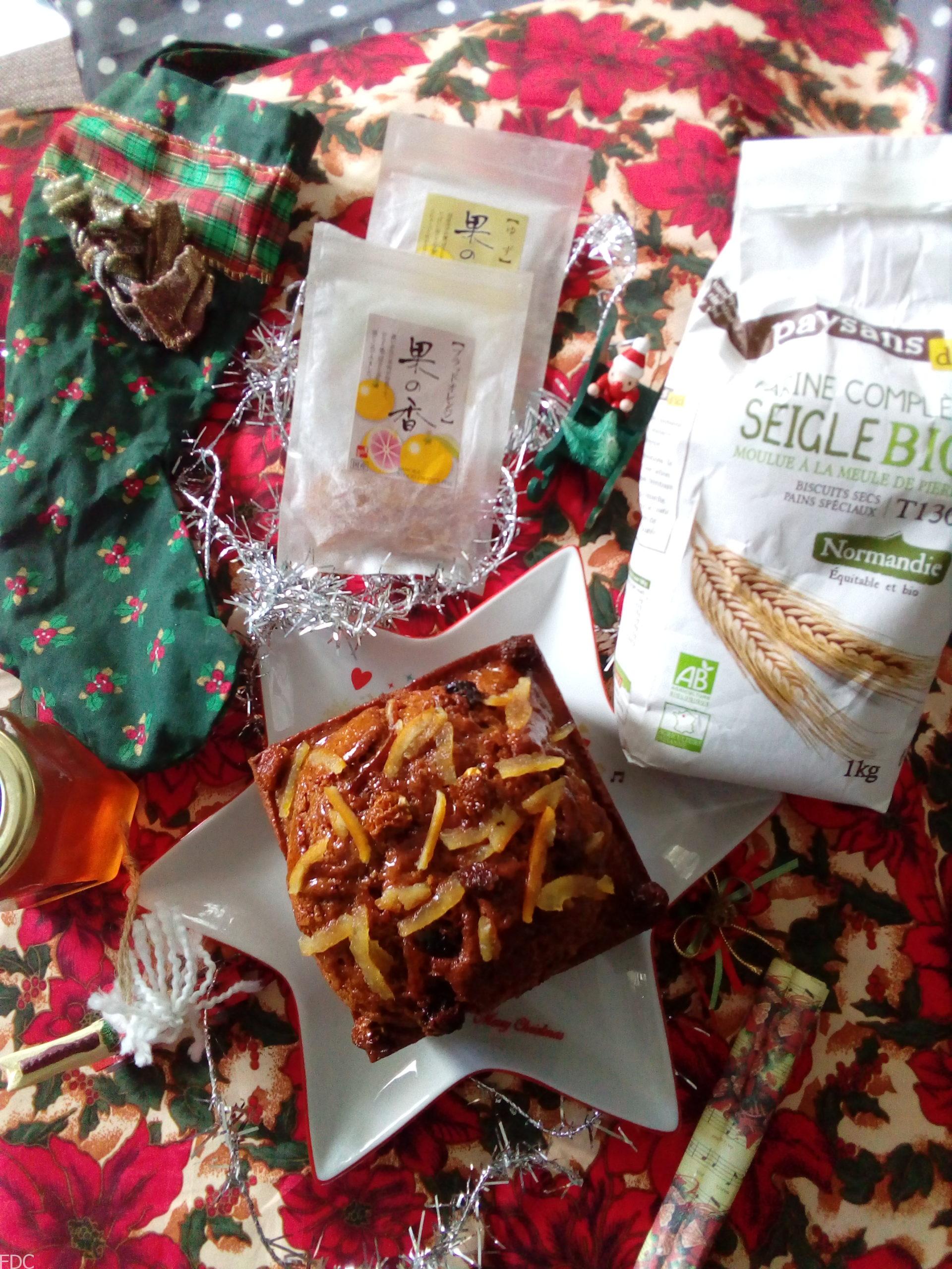 J’ai voulu faire un pain d’épices de Noël comme j’aime avec du caractère mais équilibré entre les épices, le sucre et de l’acidulé pour atténuer l’effet sucre.