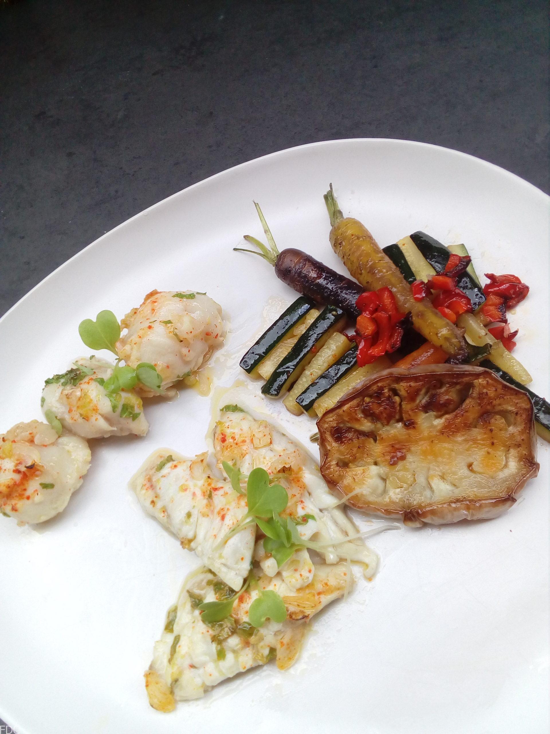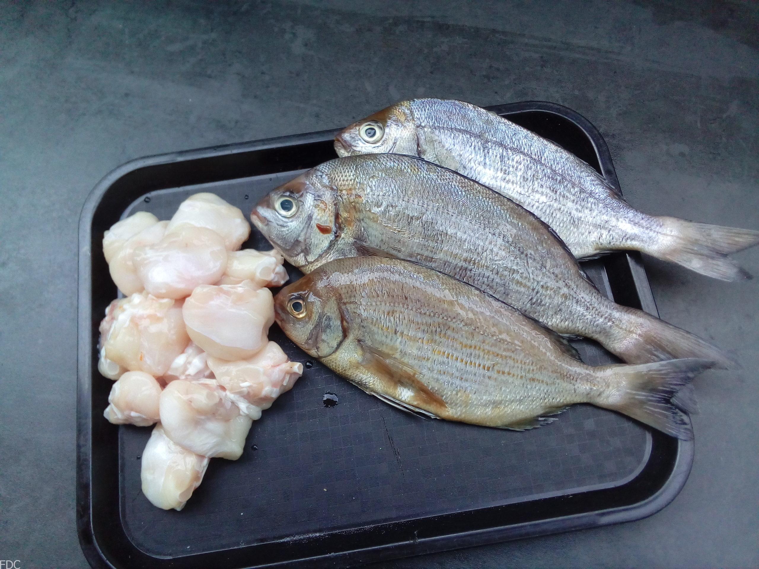 Ma recette est réalisée avec deux poissons, de la joue de raie et des filets de dorades de Normandie. Poissons que j’achète en direct à un pêcheur qui mont chaque weekend sur Paris. Fraîcheur incroyable.