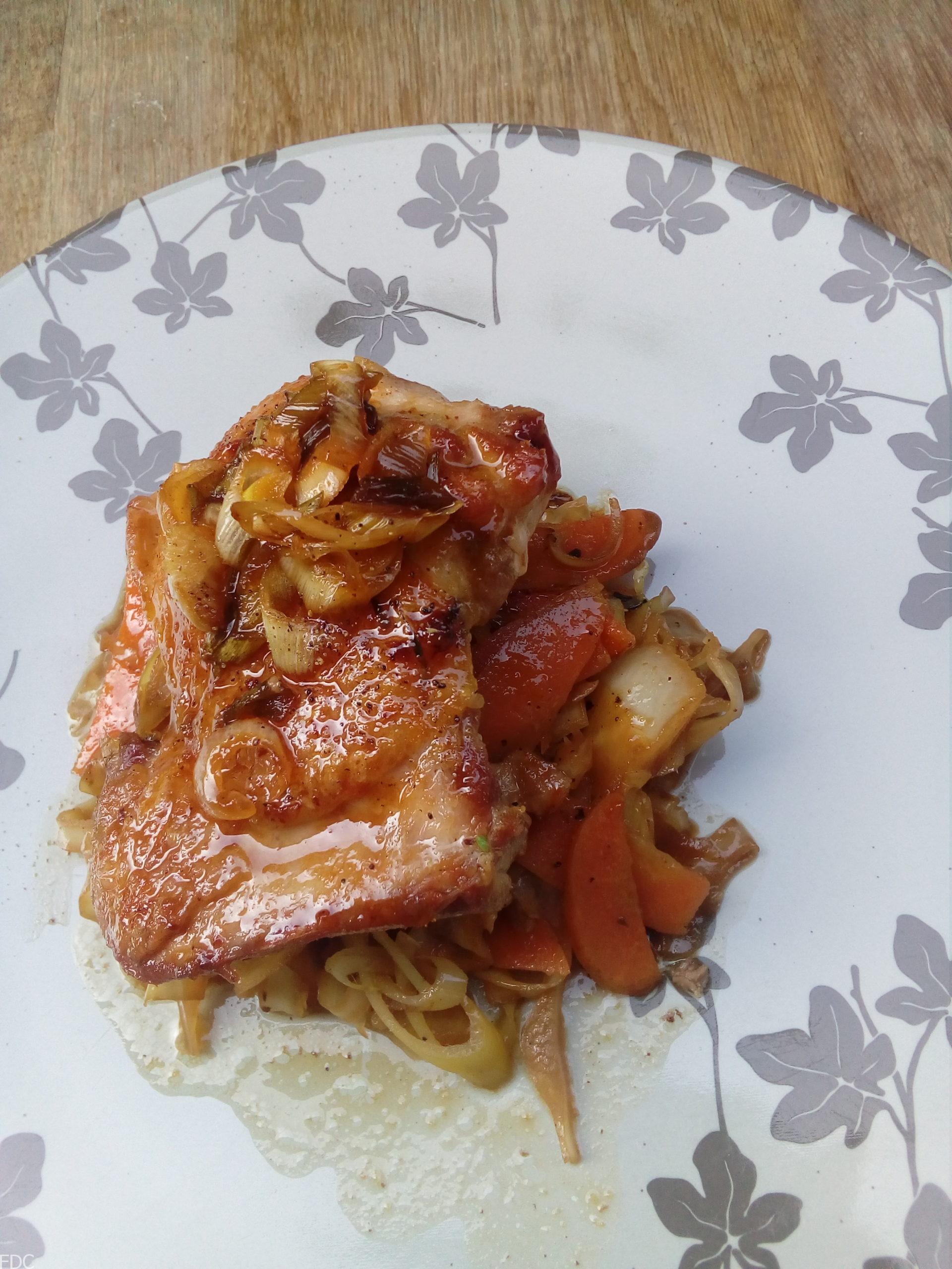 N’ayant comme information le mode de cuisson et un ingrédient que je n’ai pas sous la main, j’ai donc imaginé une variante aromatique.
