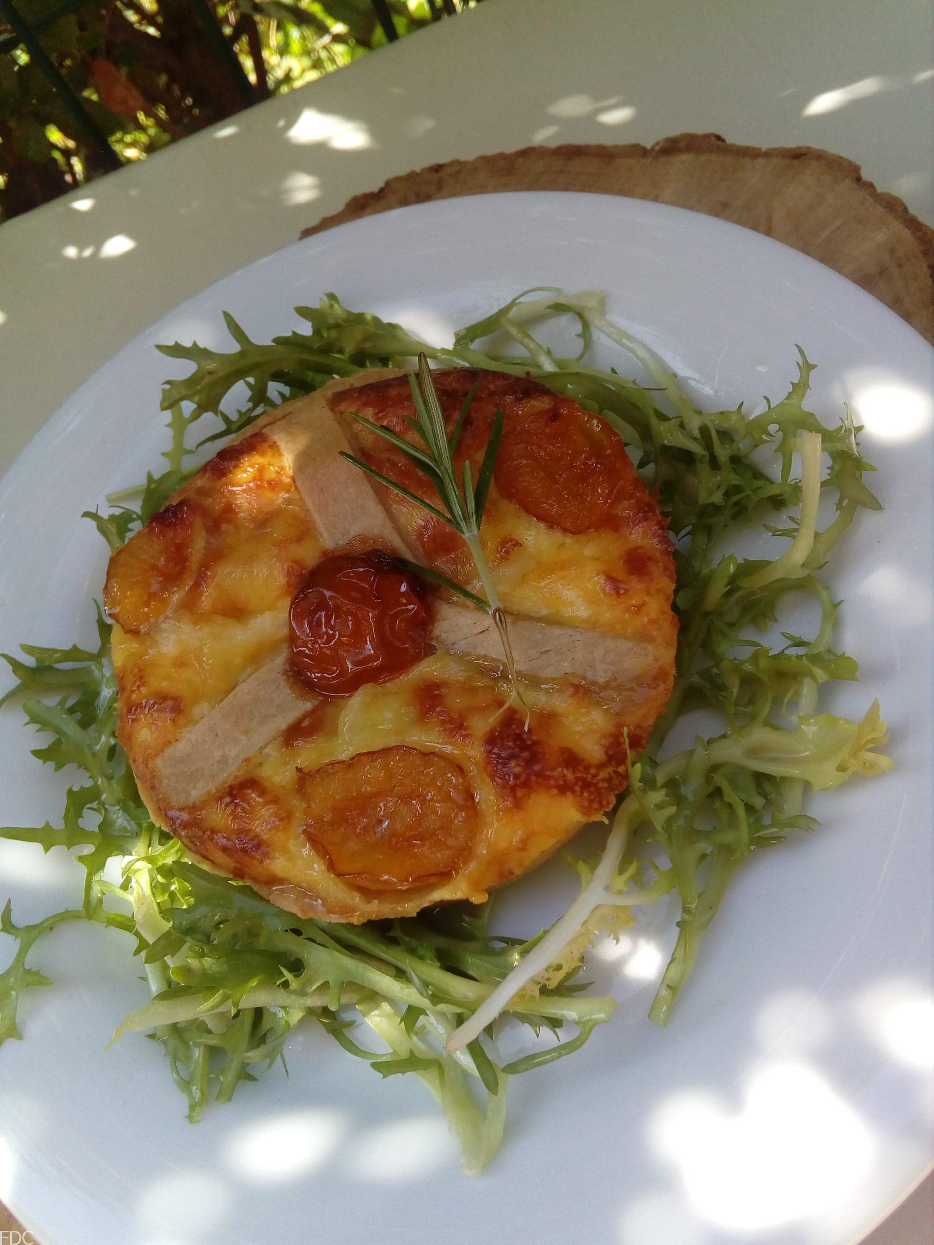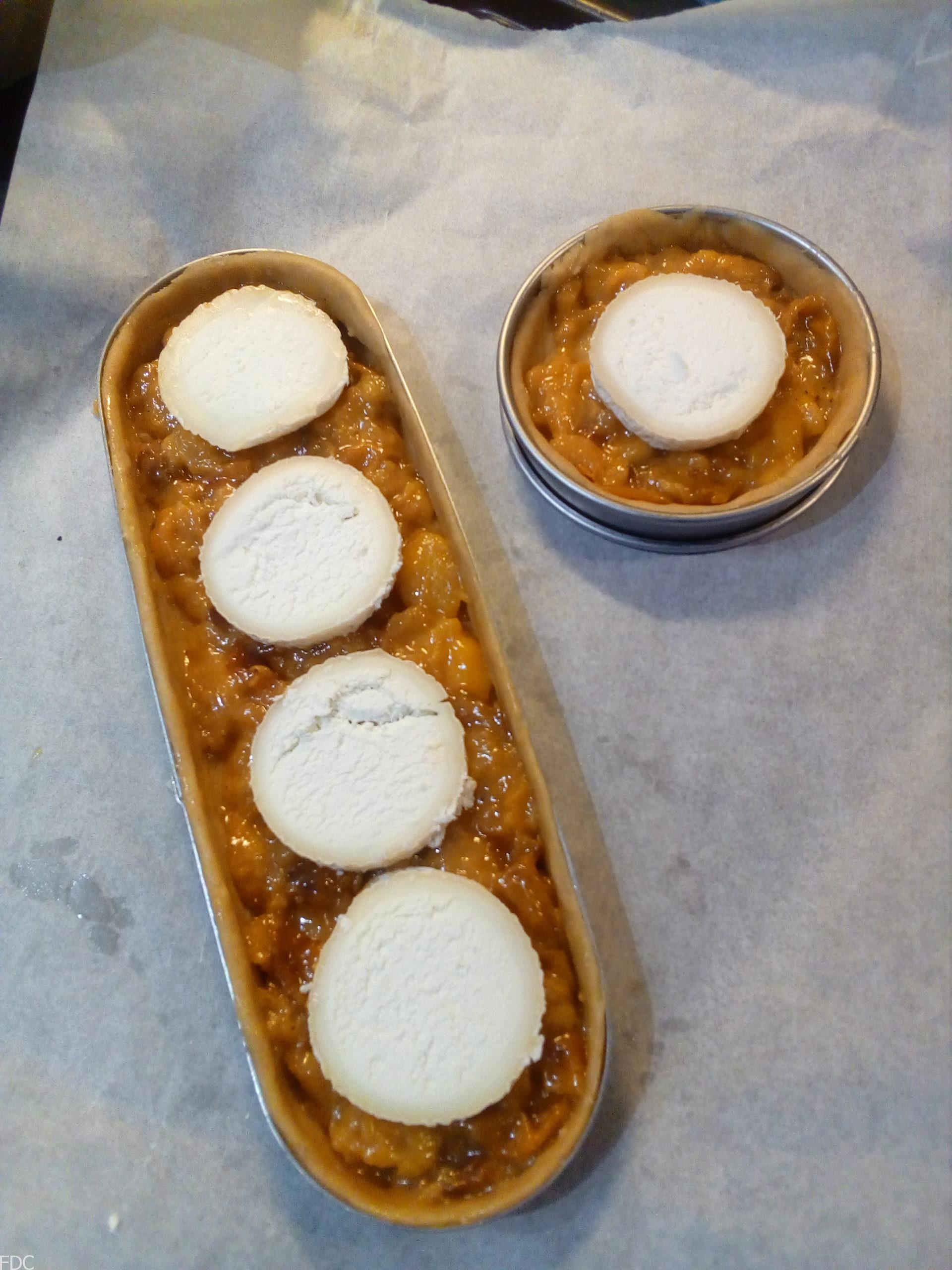 Déposez les rondelles de crottin et intercalez des demi mirabelles.