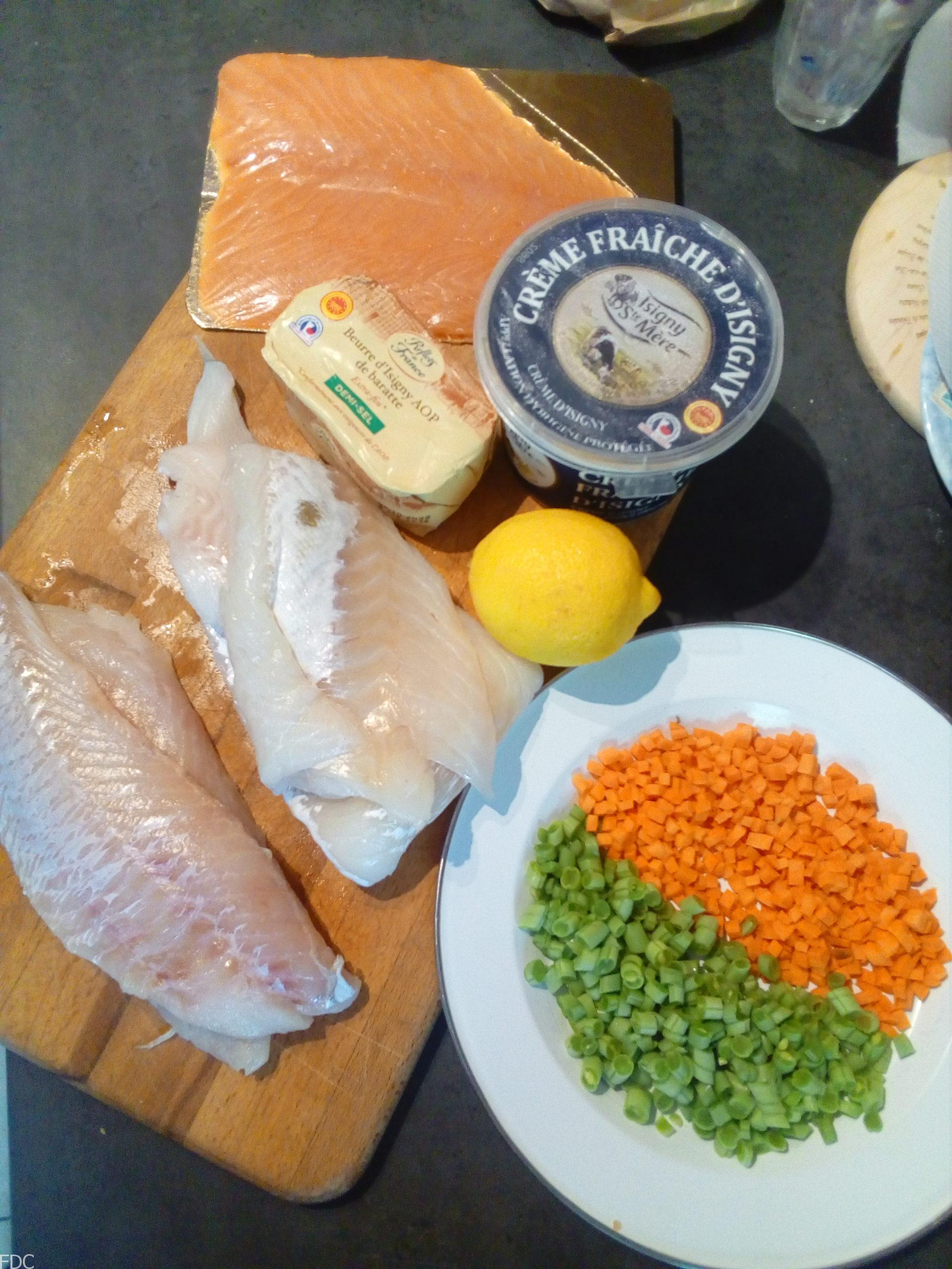 Cette fois ci j’ai utilisé des filets de rascasse, de cabillaud et du saumon fumé.