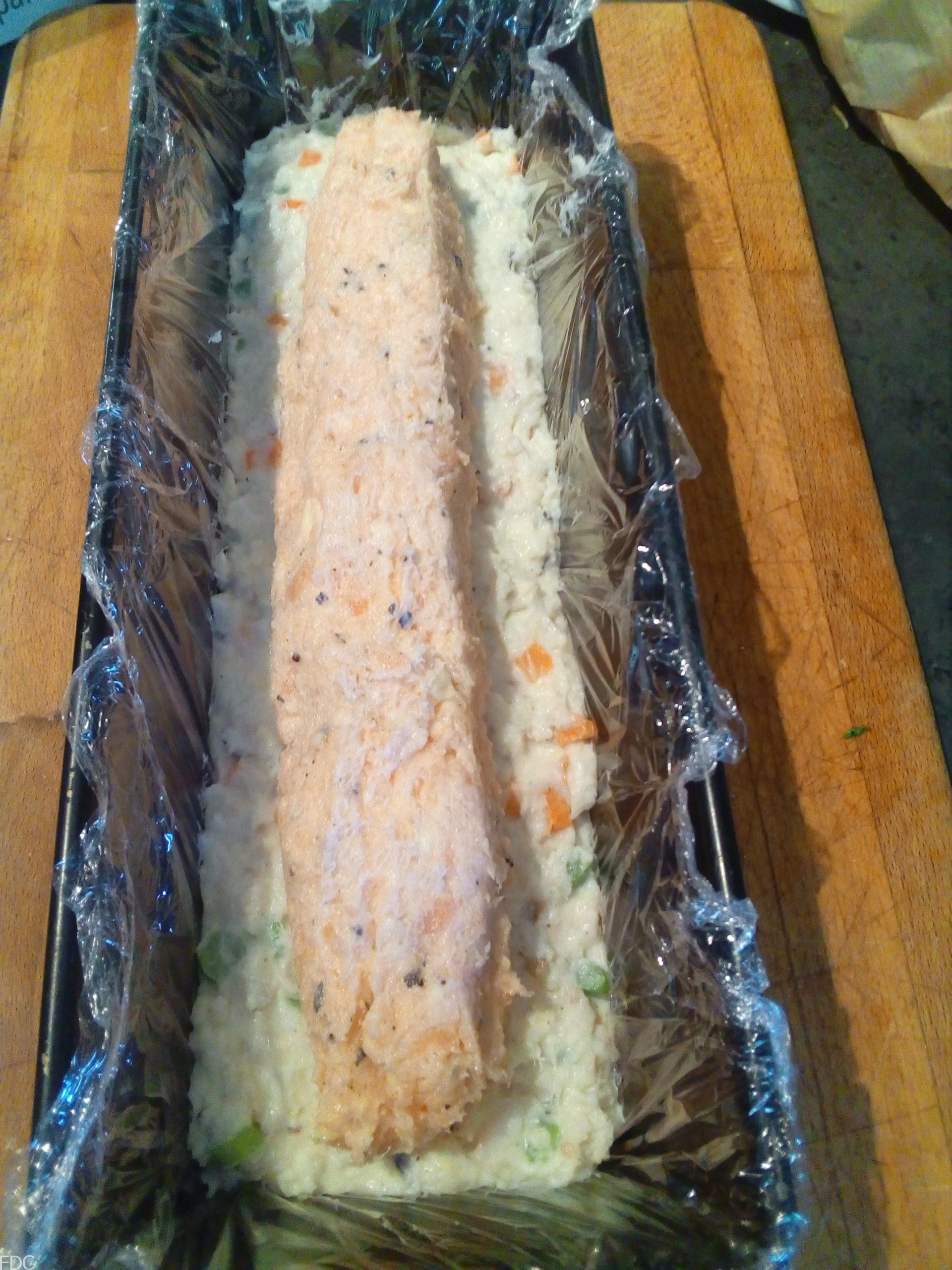 Mettre l’insert de saumon et recouvrez avec le cabillaud.