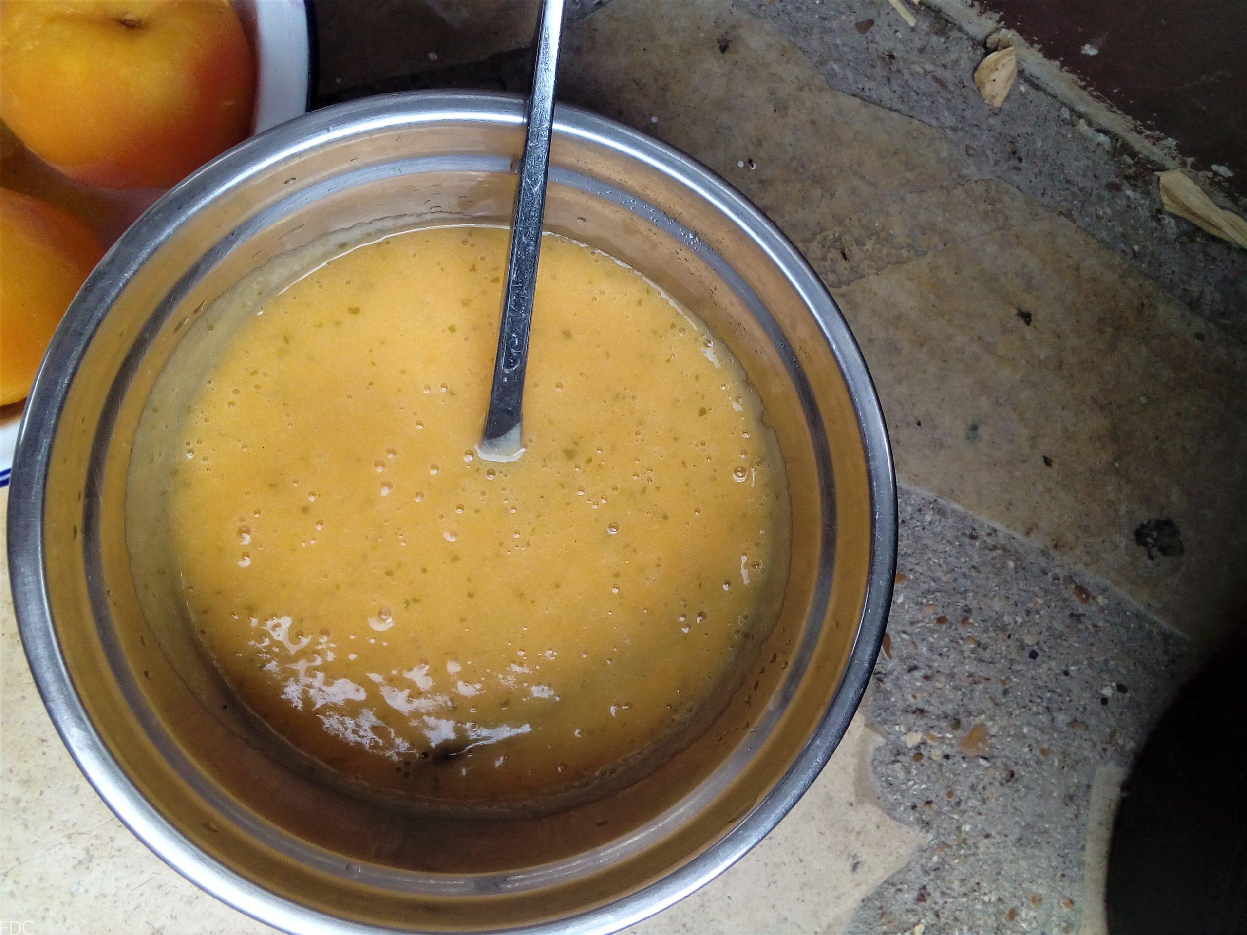 Une fois réduit en purée, ajoutez 10 cl de sirop et mixez. La mixture doit être épaisse mais coulante. Le dosage du sirop peut varier également selon votre volonté de plus ou moins sucrer.
