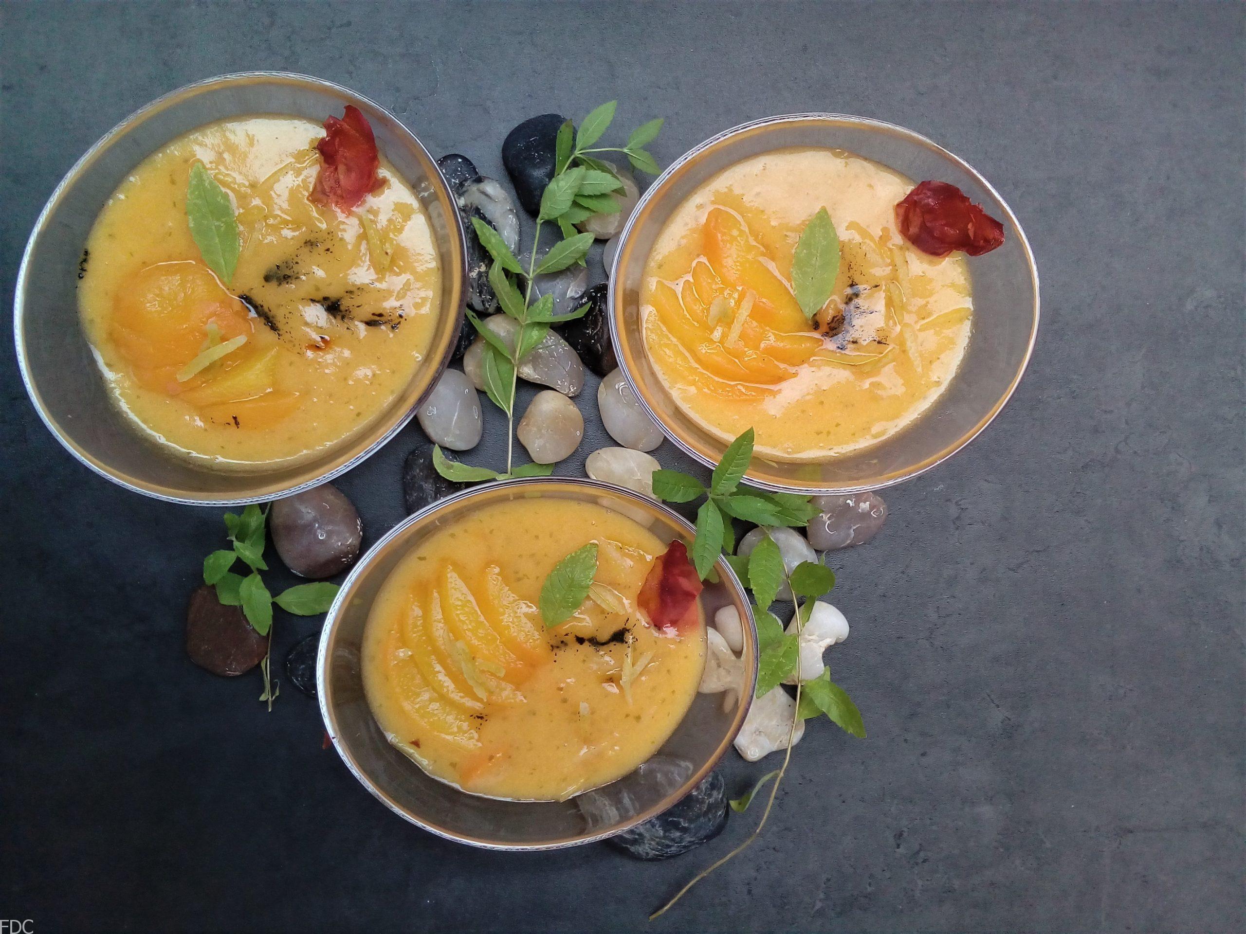 Cette soupe se sert glacée en fin de repas. L’idéal est de la préparer la veille pour le lendemain ou le matin pour le soir.