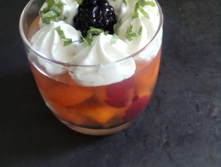 Aspic de fruits de saison et crème fouettée de Coco L'aspic de fruits de saison de fruits d’été m’a été inspiré par le sirop de…