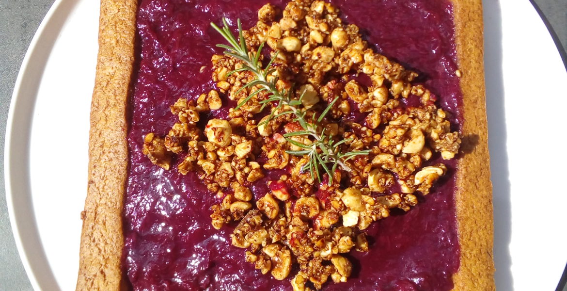 Tarte aux quetsches, romarin et noisettes caramélisées