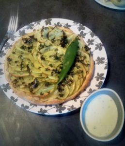 Au départ cette tarte faite avec des chutes de pâte feuilletée, cette recette s’est avérée être un petit régal comme garniture de légume ou plat selon la taille.