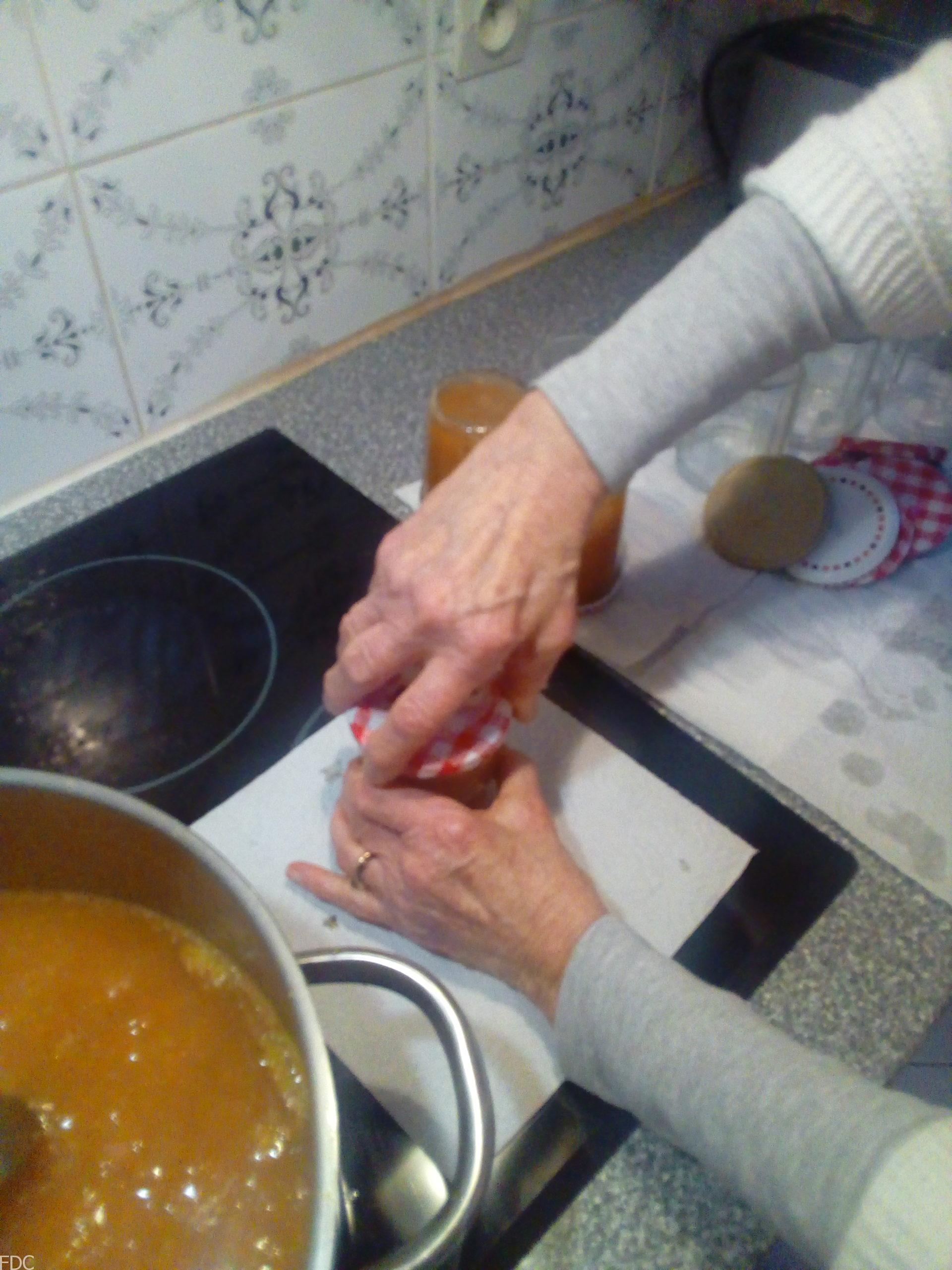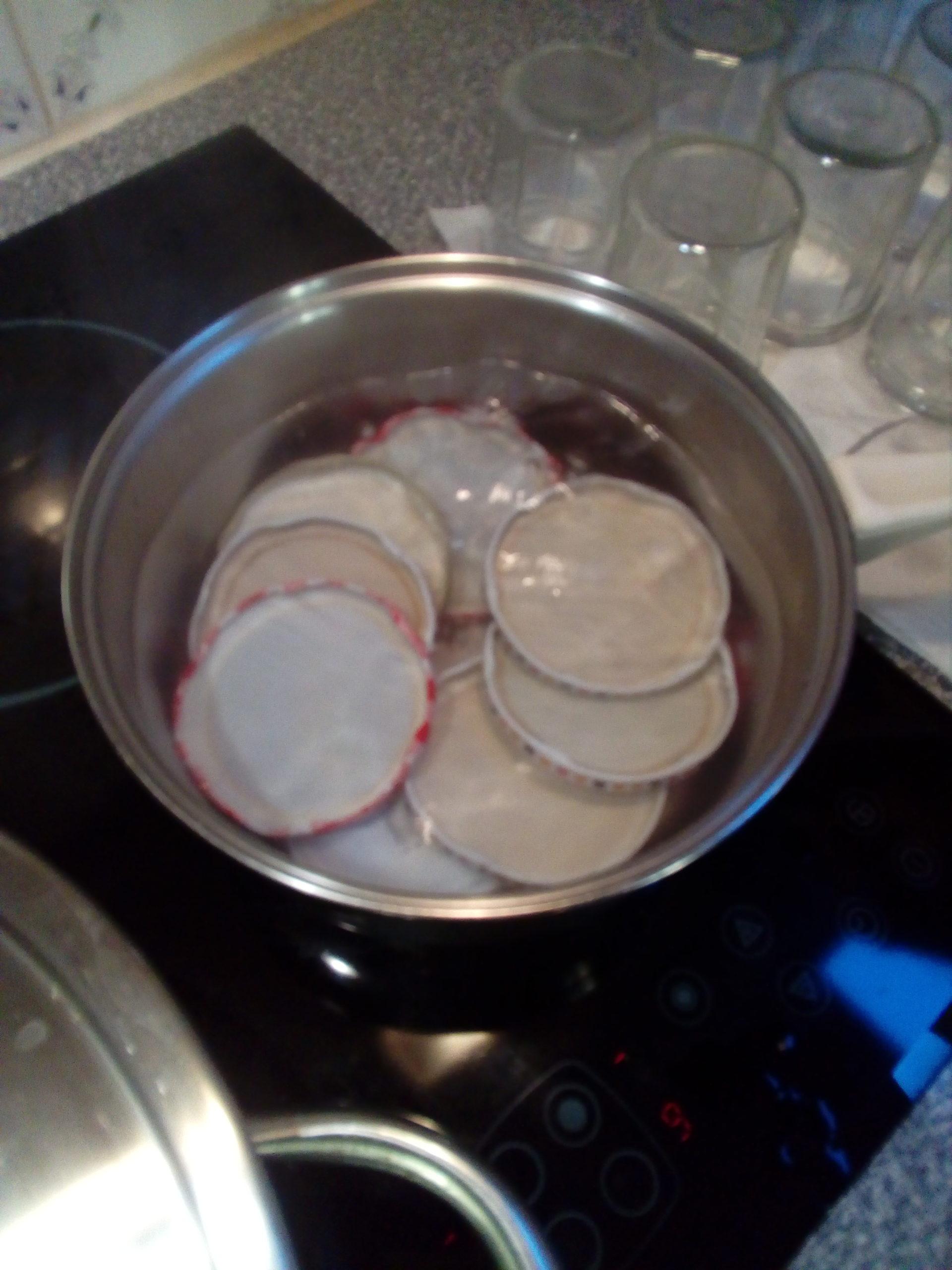Astuce : Afin de mieux stériliser vos couvercles. Avec un chiffon propre et un peu d’alcool de fruit fort ou rhum, cognac ou autre, frottez l’intérieur de vos couvercles !