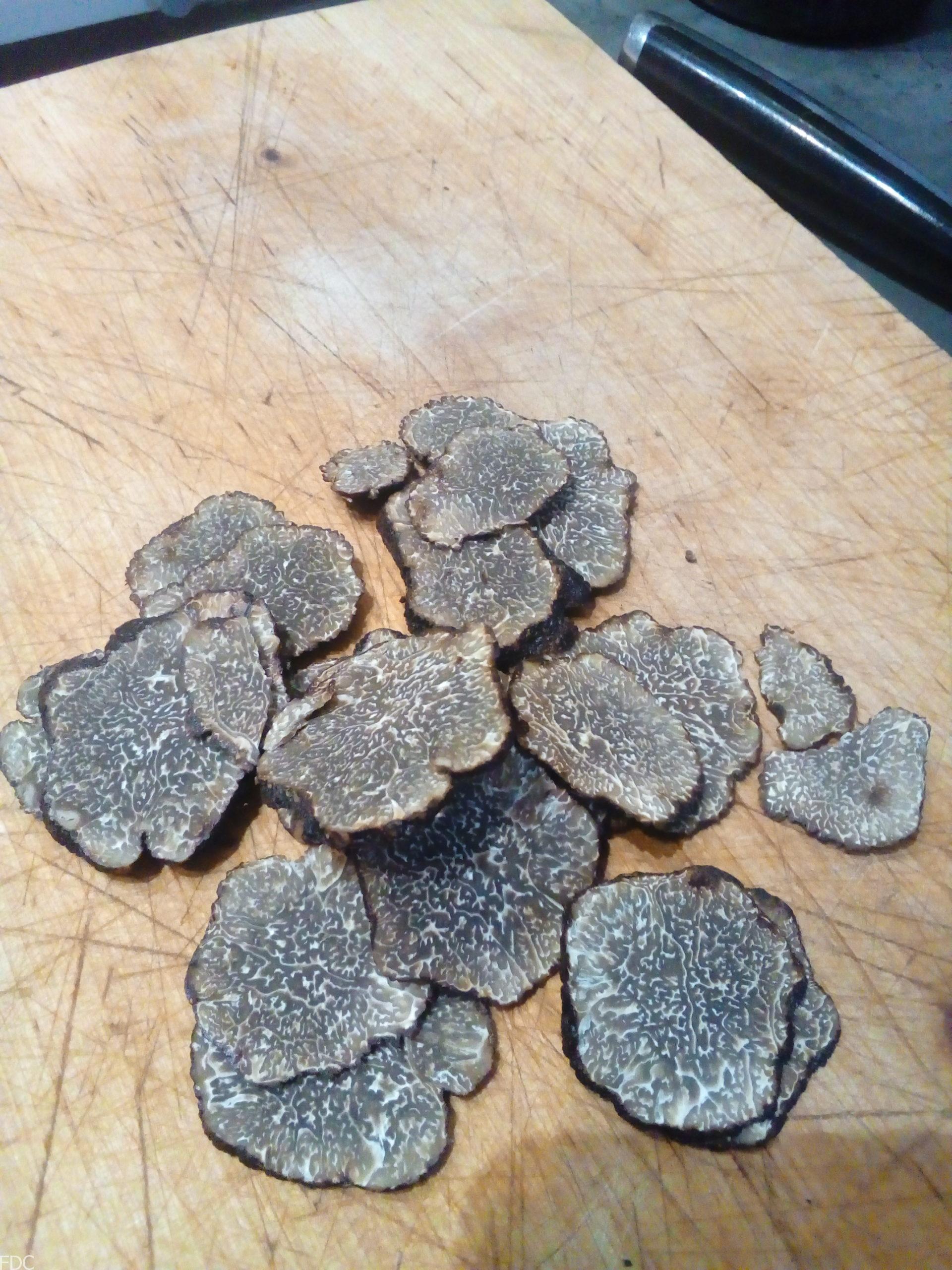 Découpez et hachez votre truffe, réservez avec les 3 cl de Noilly Prat.