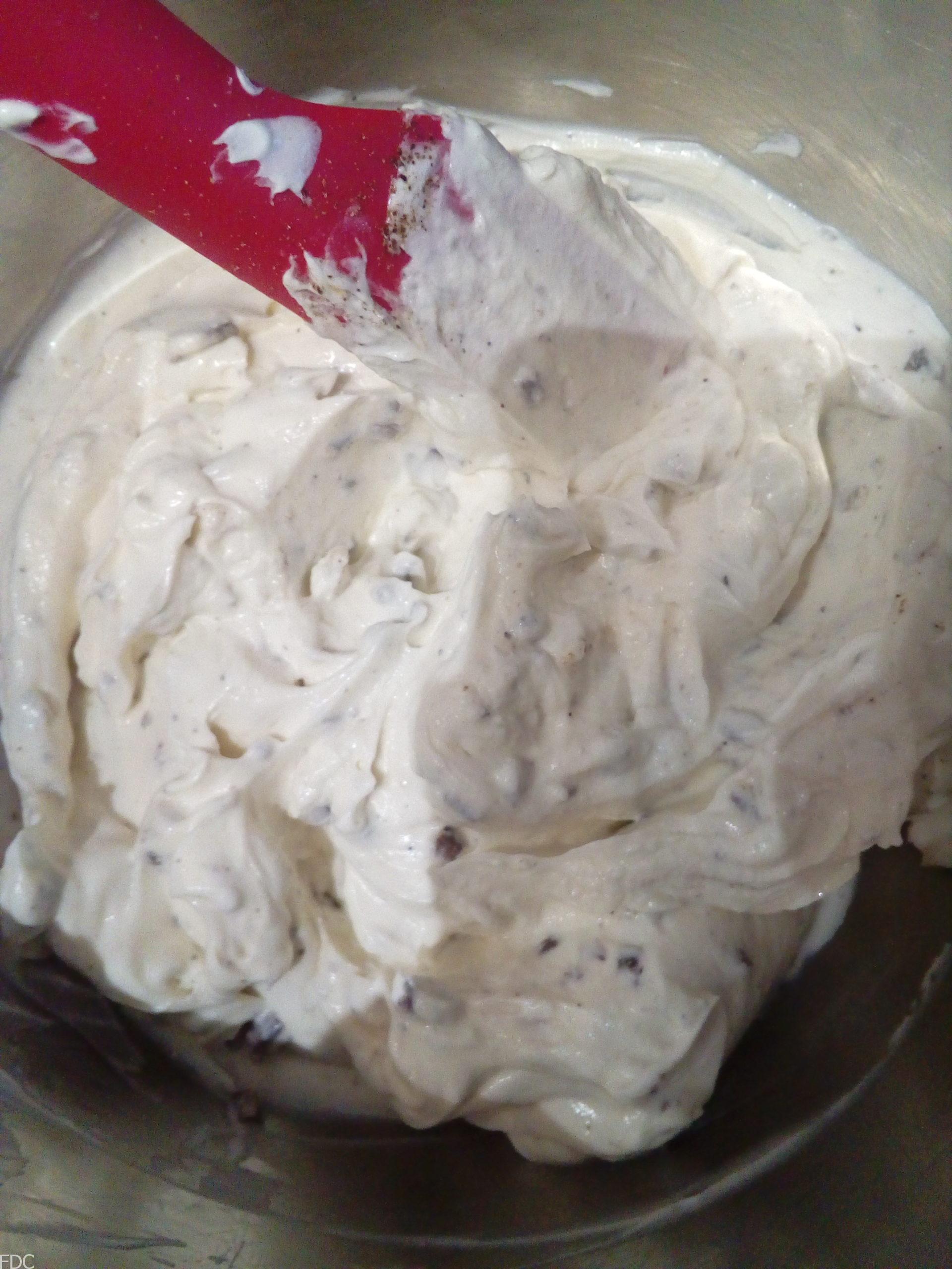 Dans un saladier ou robot mettez votre crème Mascarpone et la crème liquide, émulsionnez la ferme.