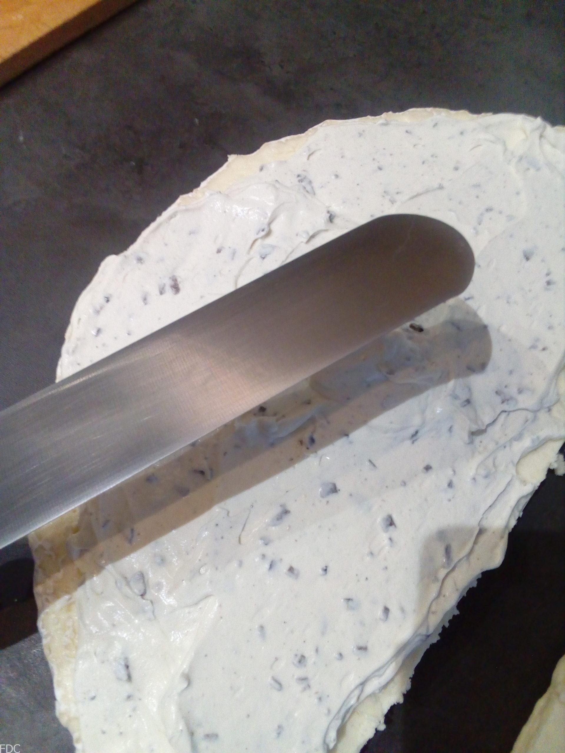 Etalage de la crème uniformément sur 1 cm d'épaisseur