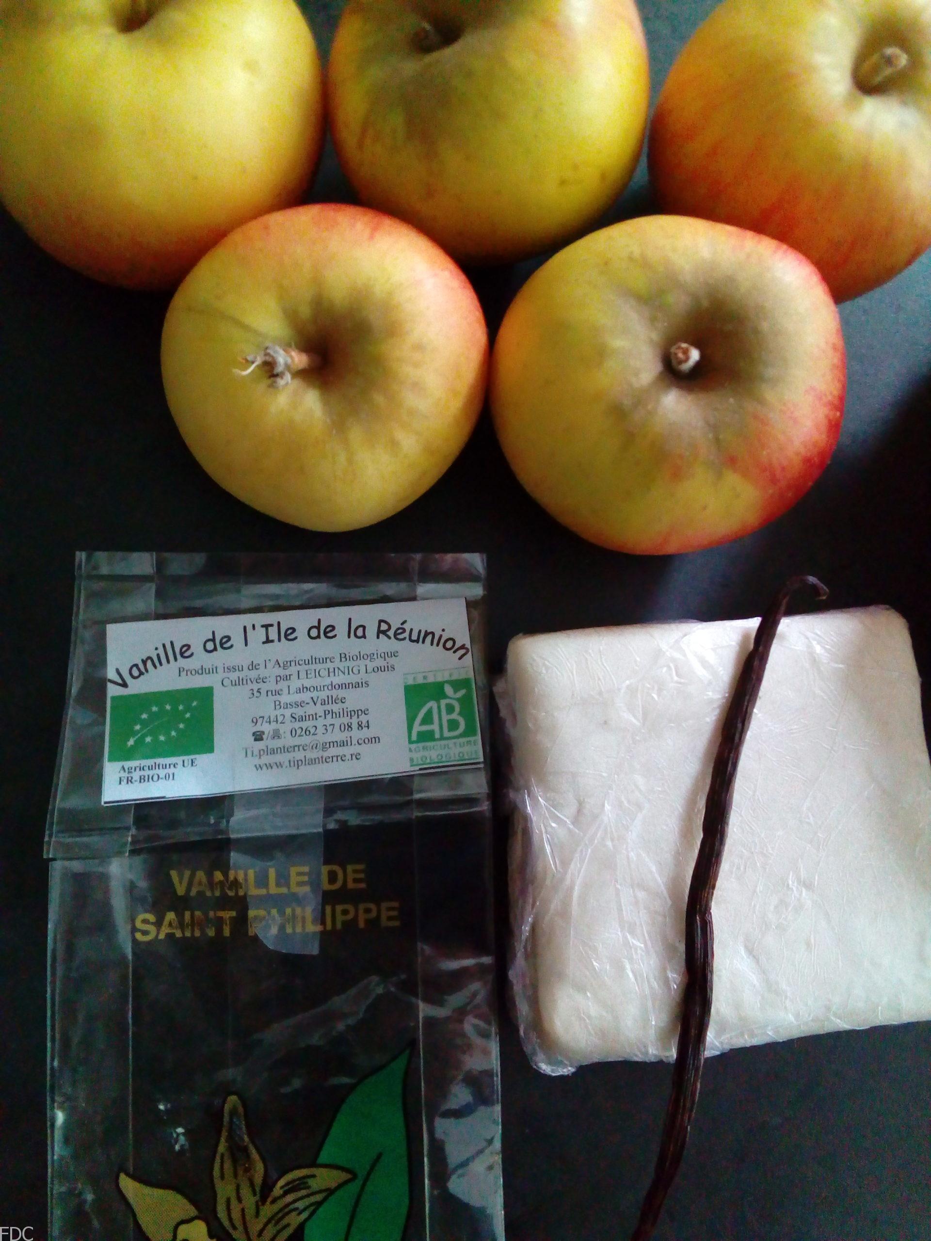 Pour ces chaussons, leur feuilletage est parfait. Par ailleurs les autres ingrédients sont aussi remarquables. Les pommes Reine de Reinette de Bernard Guicheteau du Domaine Pomamour et la Vanille Bio de La Réunion de Louis Leichnig.