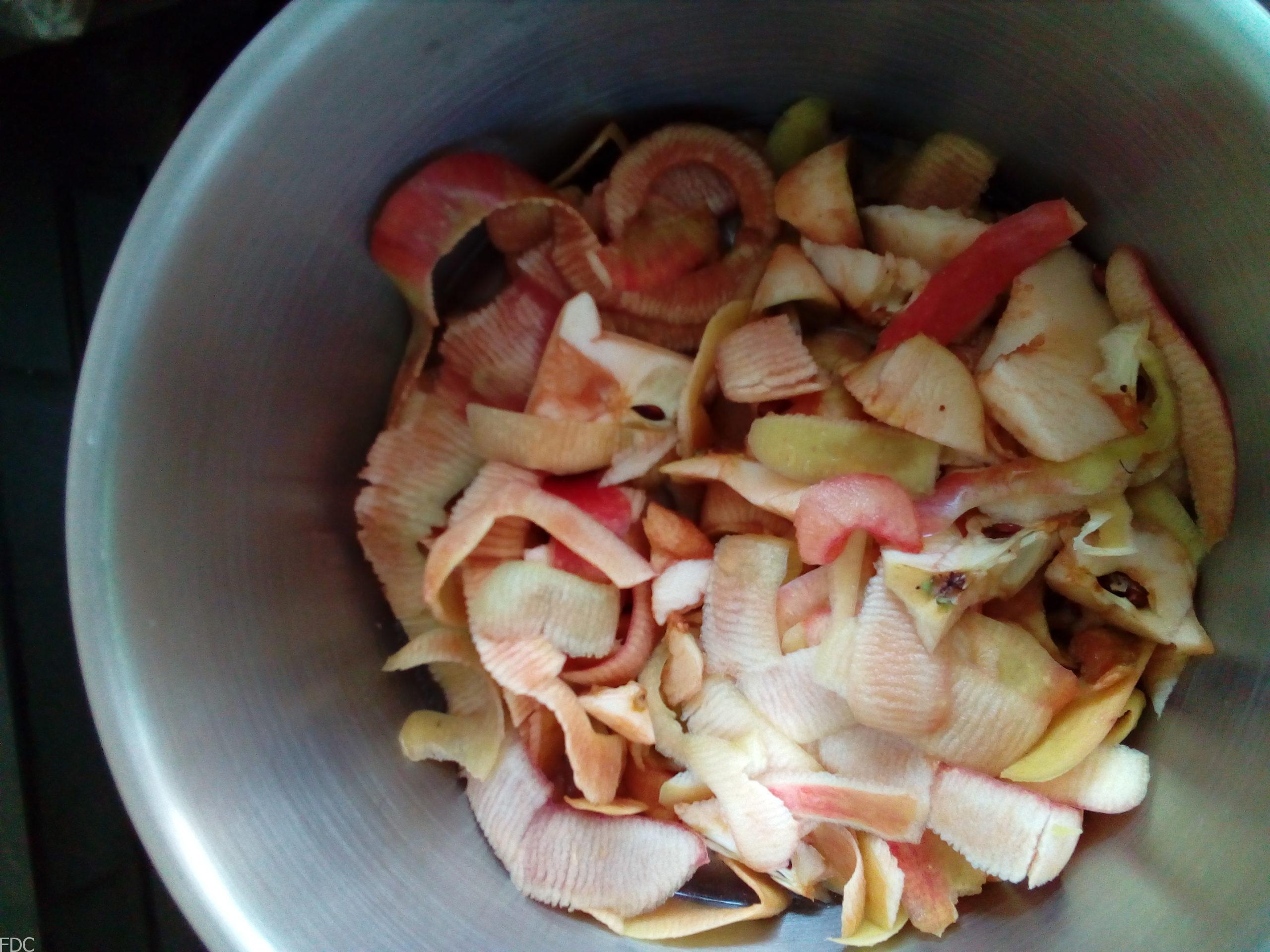 Sur les photos j’ai fait également une tarte feuilletée avec des chutes et le reste de compote. La quantité de pommes à peu d’importance car vous pouvez ensuite la consommer seule. C’est une recette zéro déchets puisque j’utilise les épluchures et les cœurs.