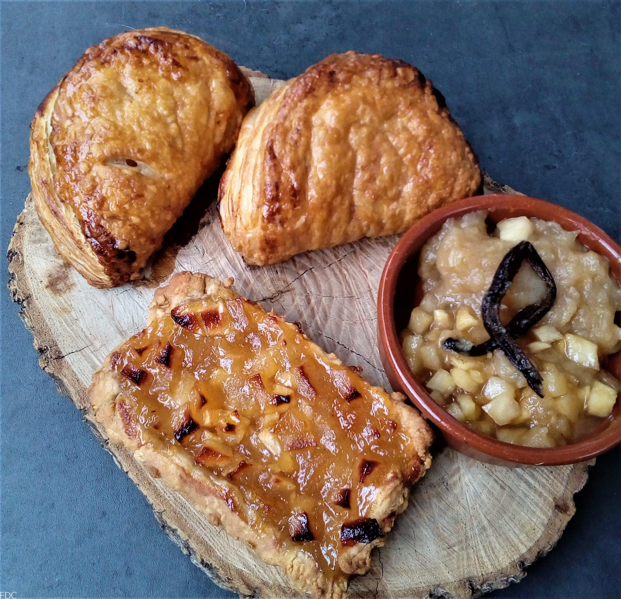 Ces chaussons aux pommes caramélisées font partis de mes encas préférés. C’est une viennoiserie qui me sert de test chez un boulanger pour tester la qualité de la boutique. Le feuilletage, la compote sont les deux ingrédients qui entrent dans la composition.