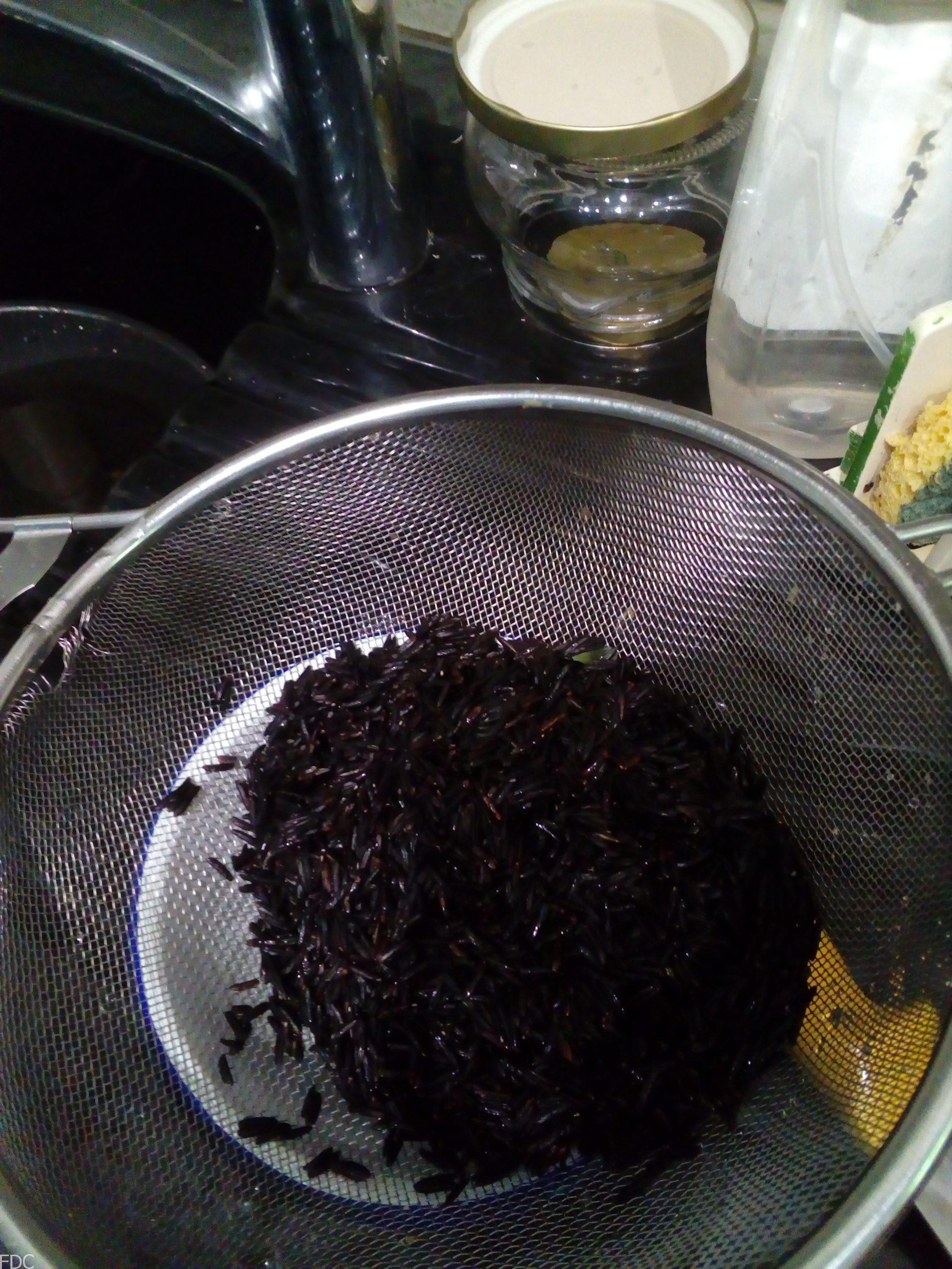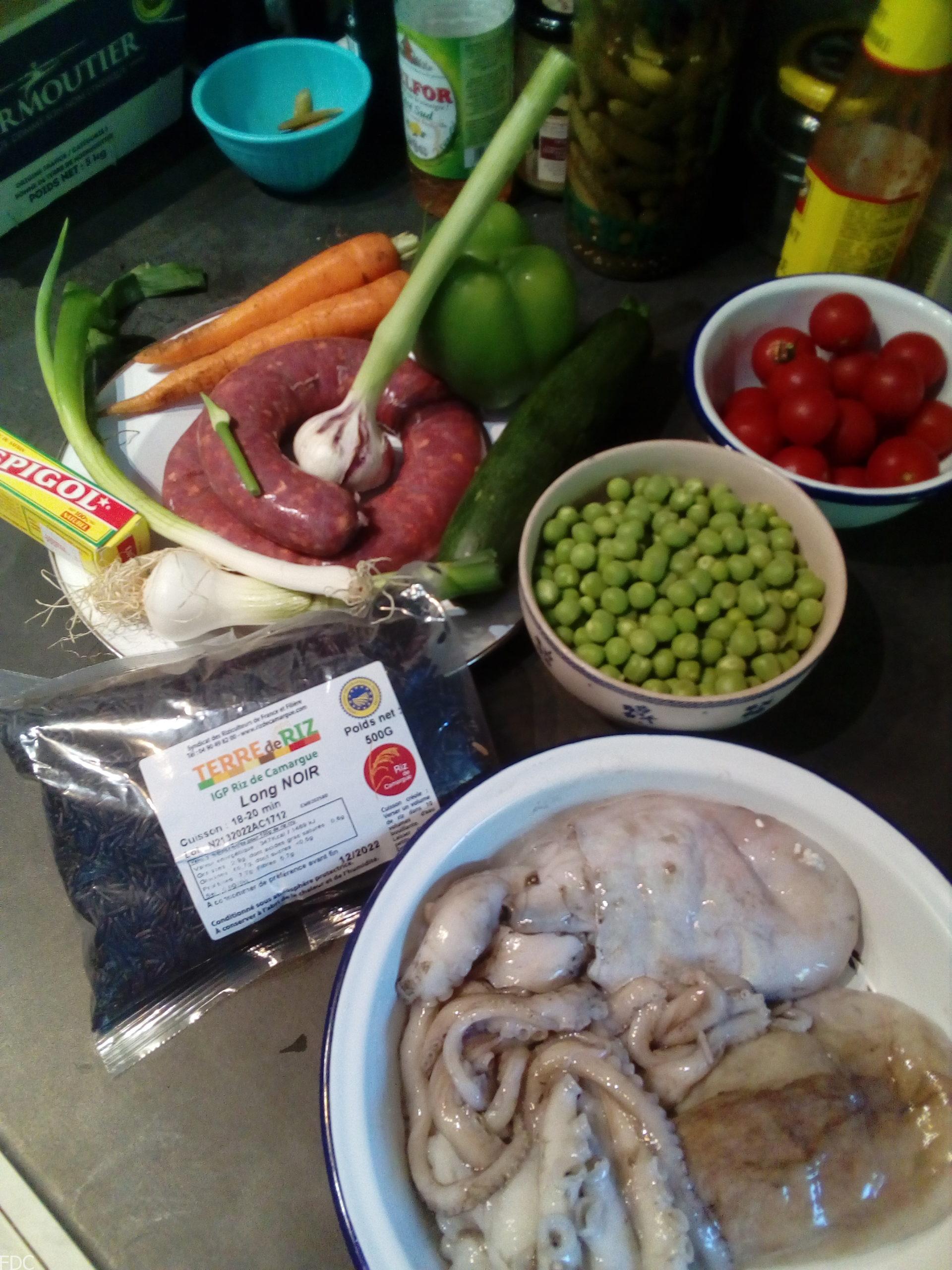 Le riz noir (complet) est un riz à cuisson longue voire très longue donc on fera en deux cuissons sinon il vous faut 2 litres de bouillon.