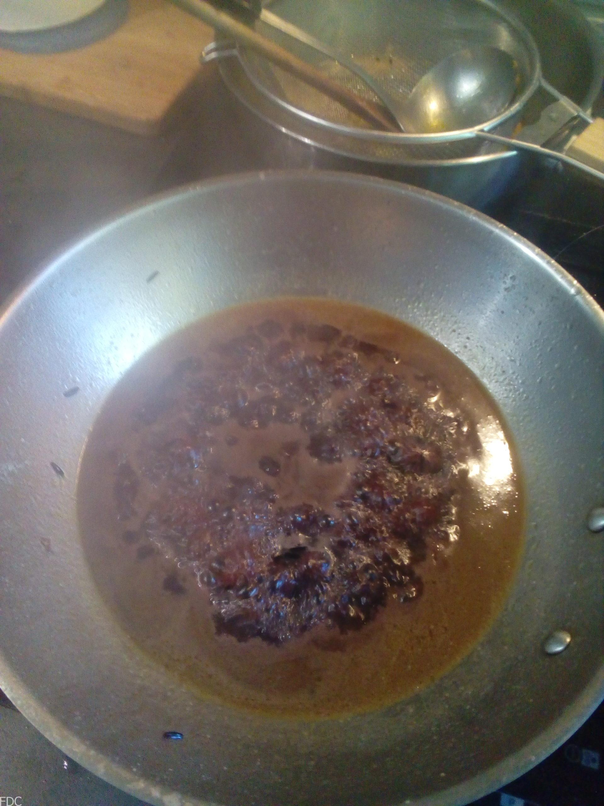 Passez votre bouillon et mettez-le à chauffer dans le wok, ajoutez le poulpe et laissez cuire. Lorsque votre riz commence à être plus tendre, ajoutez-le au poulpe et laissez cuire à petit bouillon.