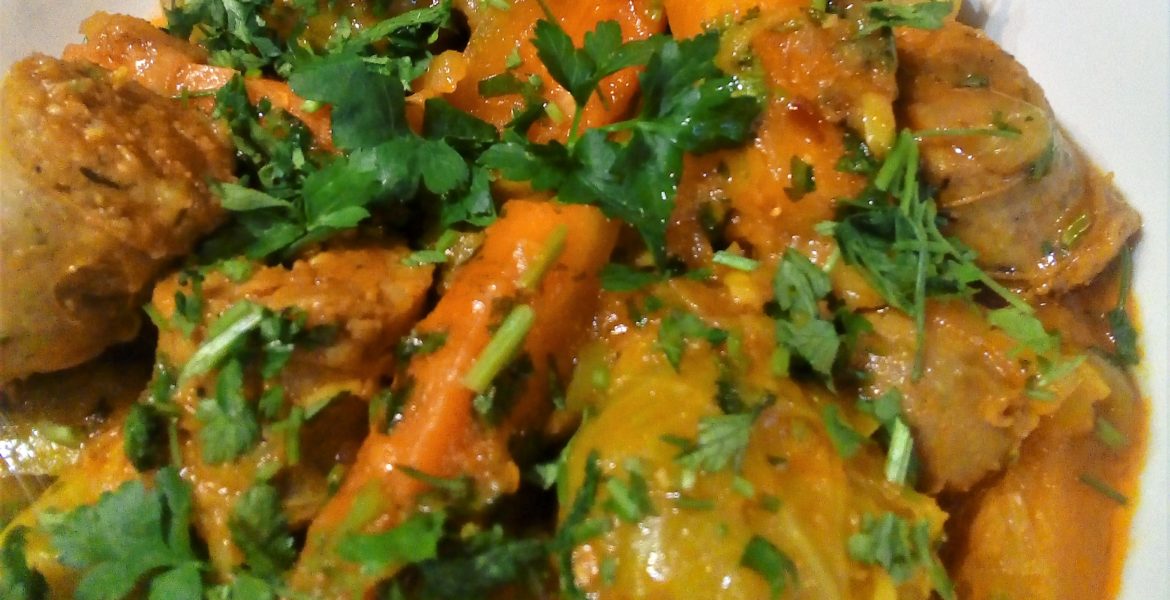 Cette recette de choux de Bruxelles entre Potée et Rougail est une idée venue en faisant le marché dimanche matin. Quand on n’arrive pas à se décider sur une recette, et bien on les fusionne? Avec une saucisse Créole maison de mon traiteur Réunionnais et de jolis choux de Bruxelles de mon maraîcher local, il m’a suffi de les réunir et d’apporter des saveurs exotiques.