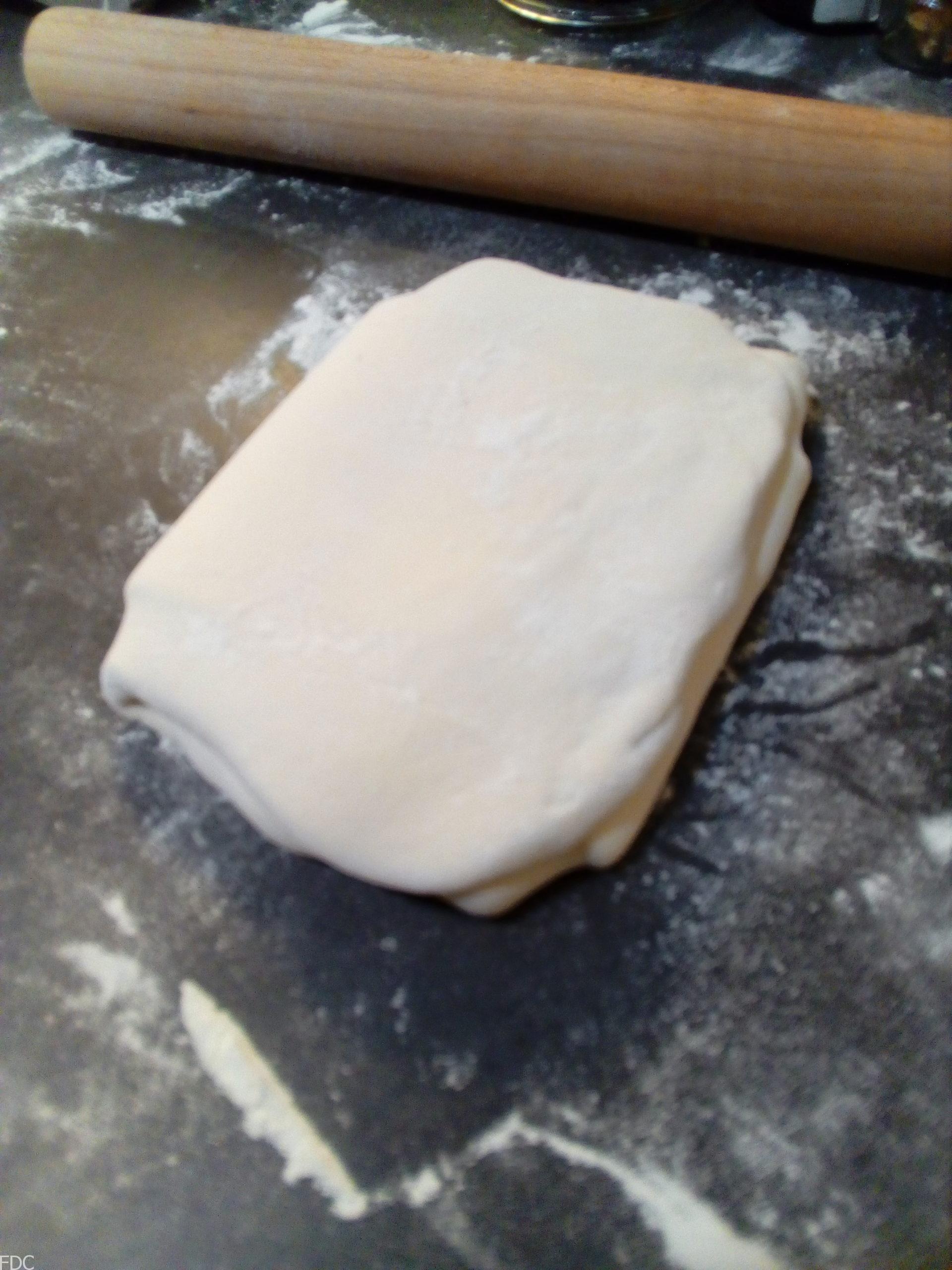 Etaler la détrempe en rectangle à la moitié de la taille du beurre manié.