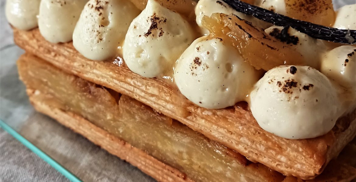 Vous pouvez déguster ce délicieux mille Feuilles aux pommes caramélisées.
